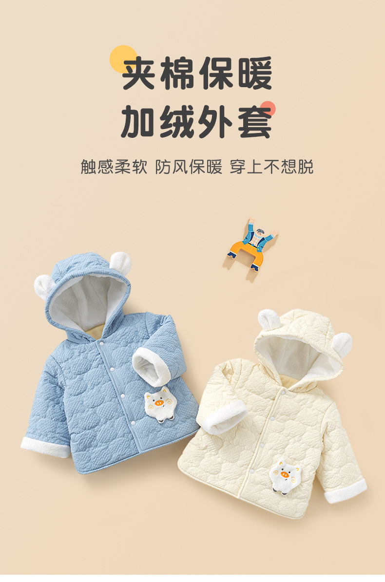 赤ちゃんの綿服秋冬子供の綿入れの男の子と女の子の厚いベルベットの保温は綿の冬服を挟んで赤ちゃんの綿服を着ます