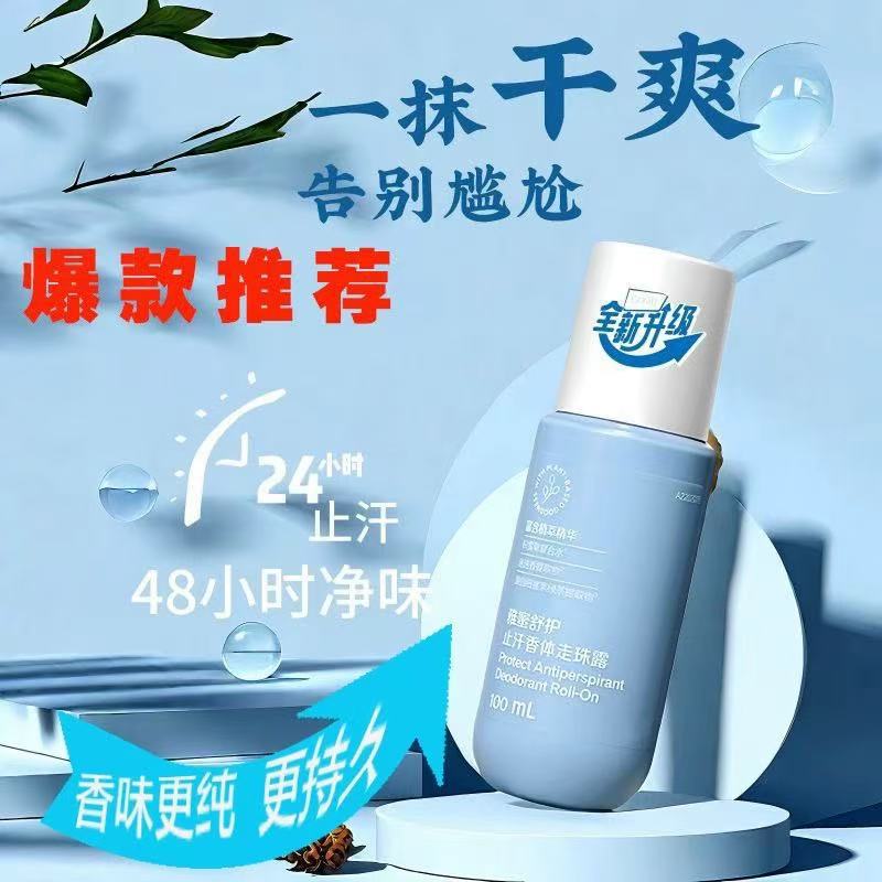 最新版雅蜜舒护止汗香体中文走珠露100mL速干英文蓝瓶止汗露