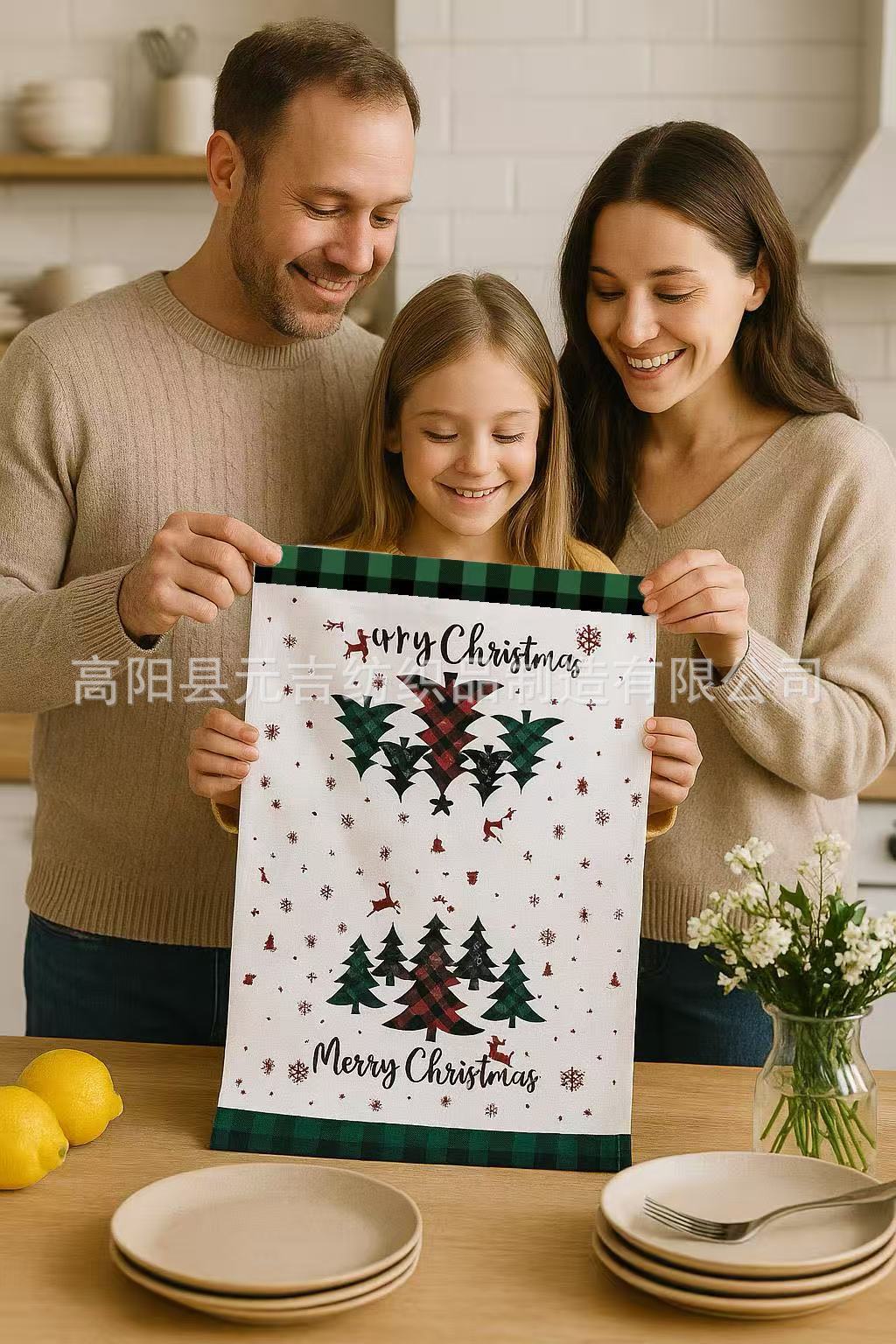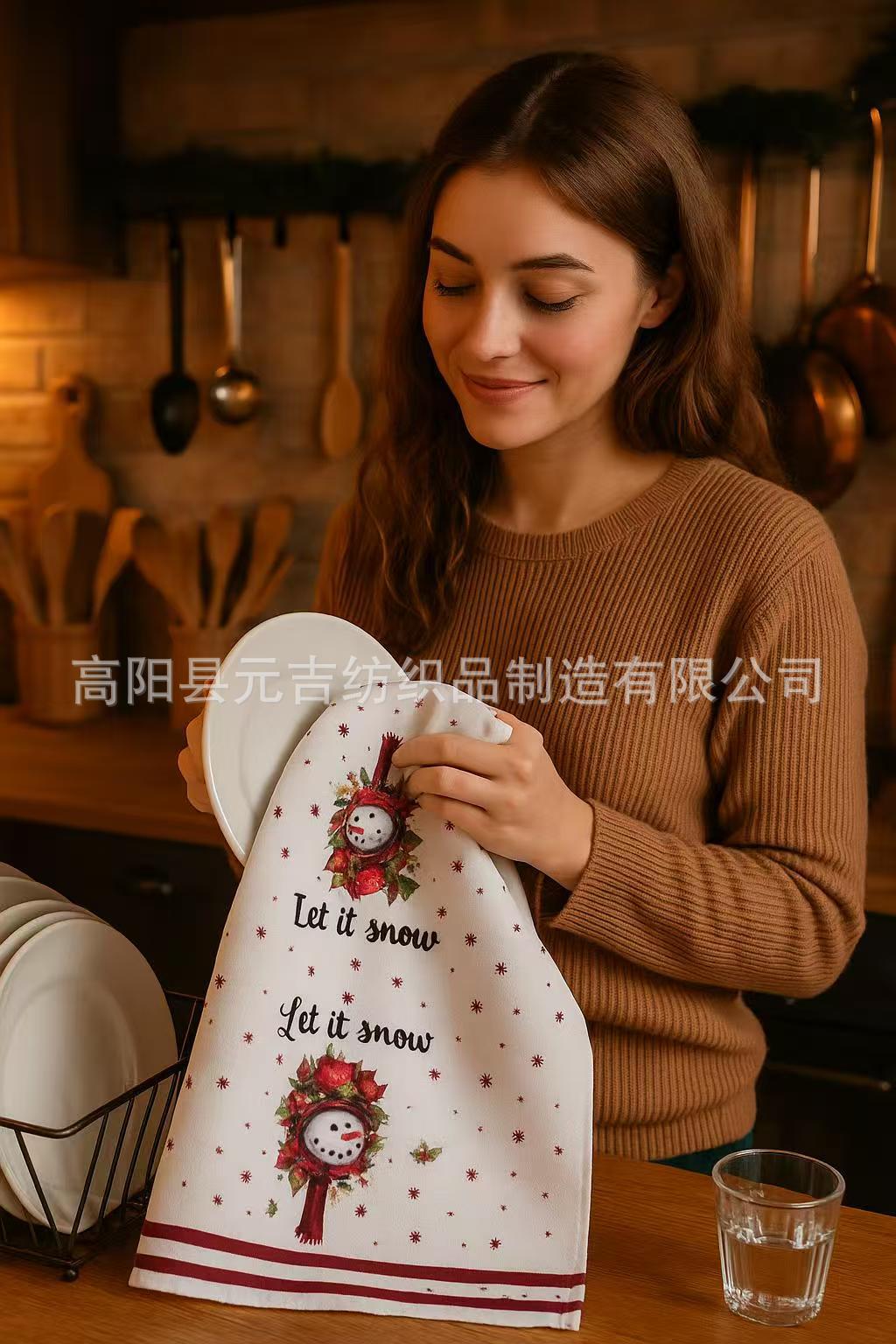 跨境热卖圣诞节日毛巾多功能可吸水洗碗巾厨房装饰支持来图定印