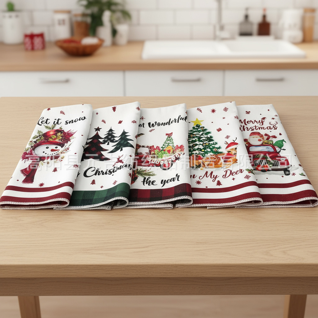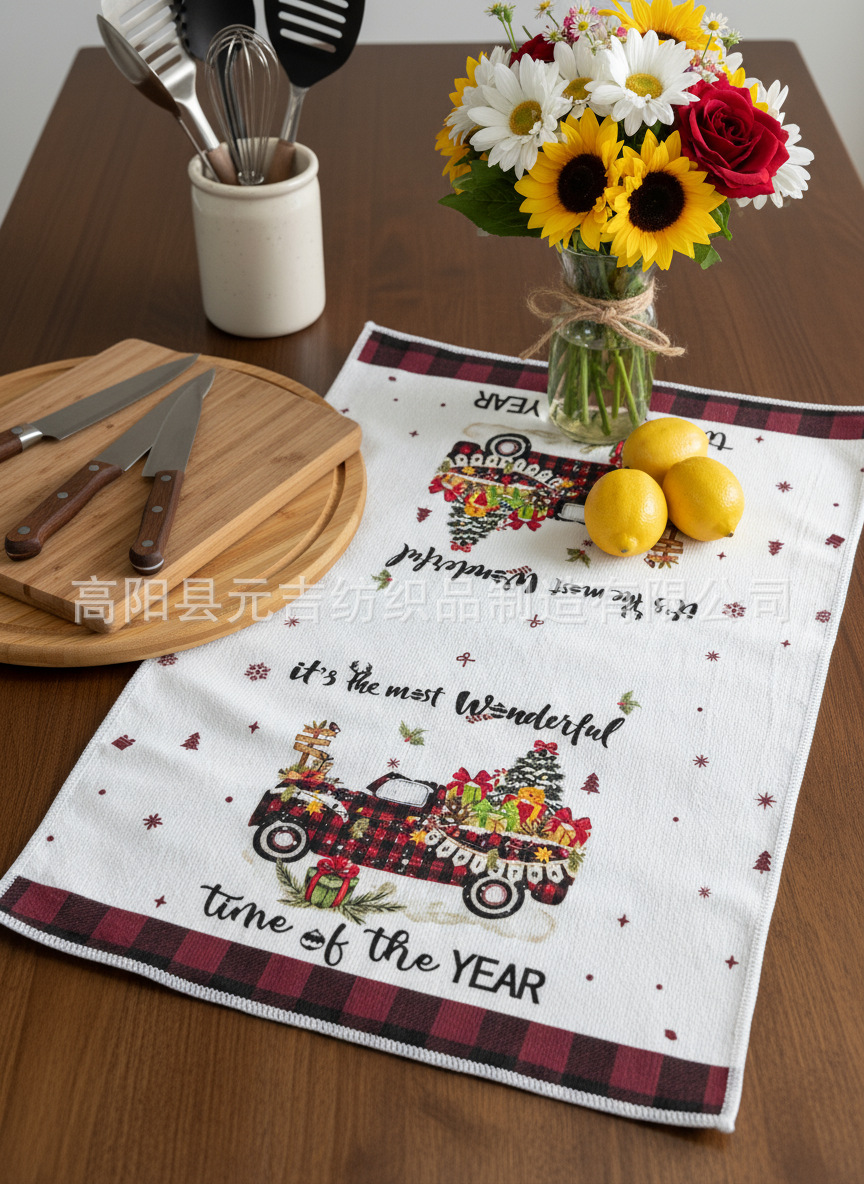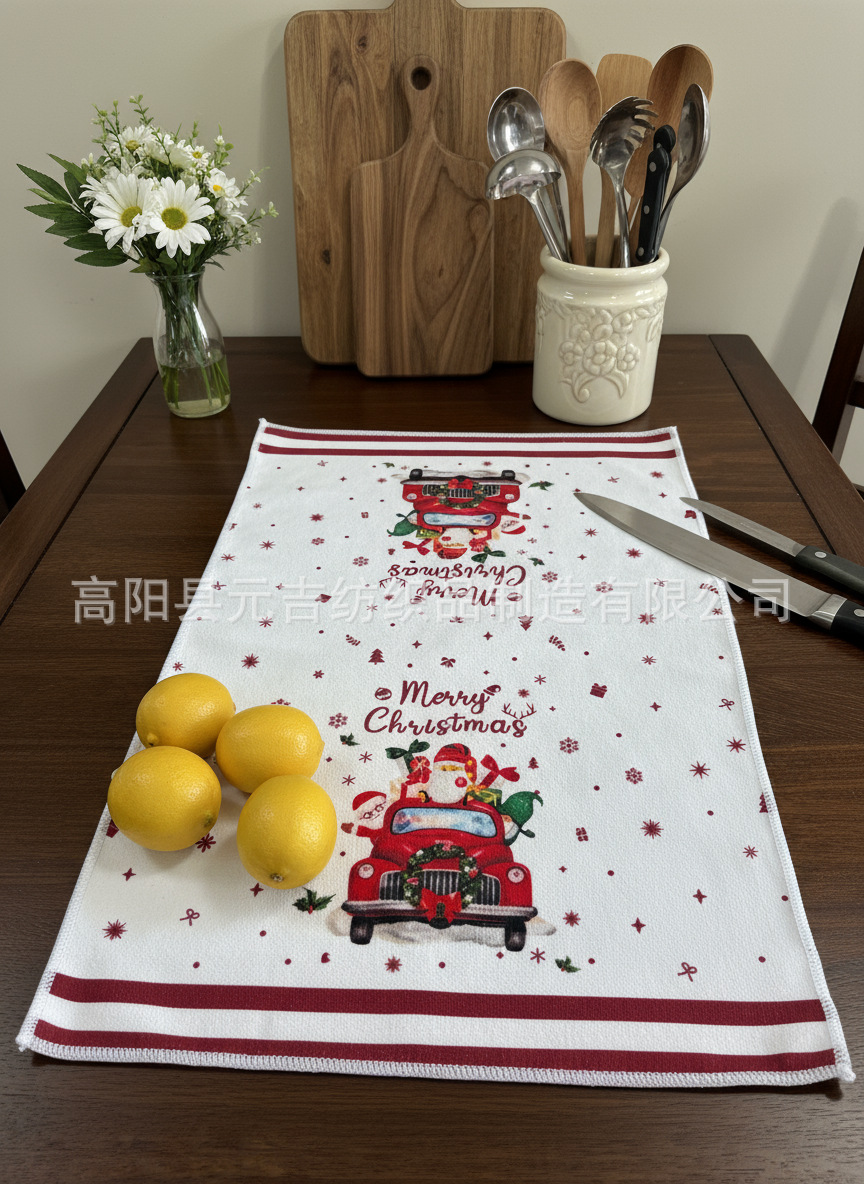 跨境热转印花亚马逊厨房超细纤维毛巾圣诞洗碗巾礼品节日印花桌垫