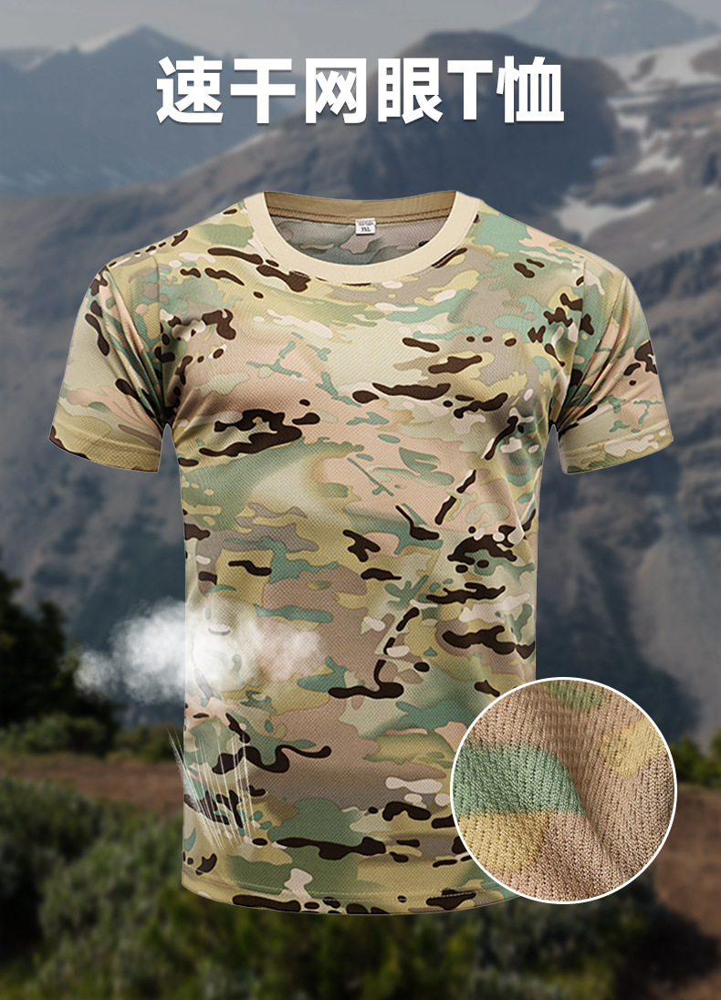 夏迷彩速乾Tシャツ迷彩メッシュ半袖アウトドア体力戦術Tシャツクロスボーダー迷彩半袖卸売
