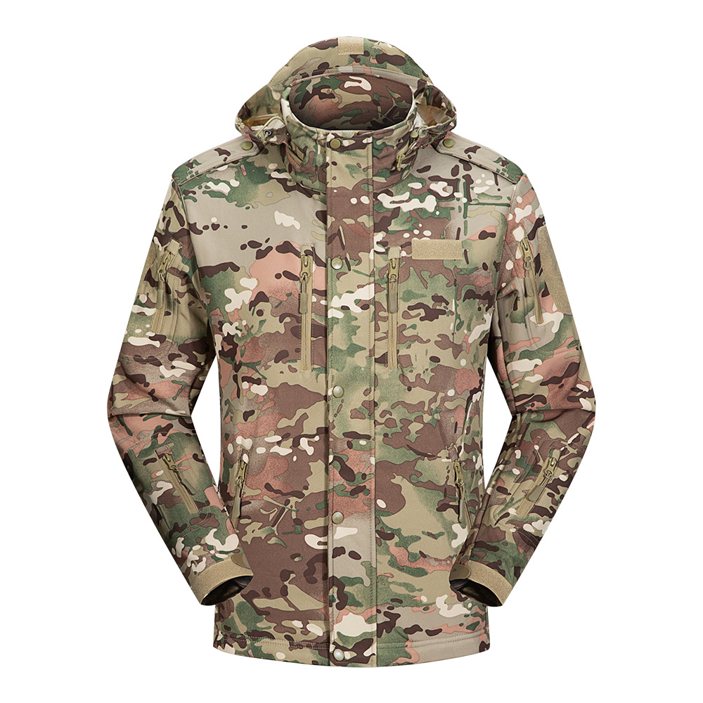 新型ソフトシェル突撃服サメ皮多ポケットアウトドア軍ファン戦術突撃服防風防雨迷彩ジャケット