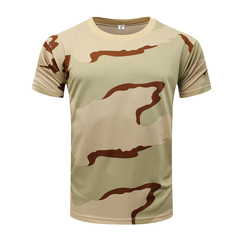 夏速乾迷彩半袖男丸首屋外開拓体トレーニング服通気戦術tシャツ現物卸売り