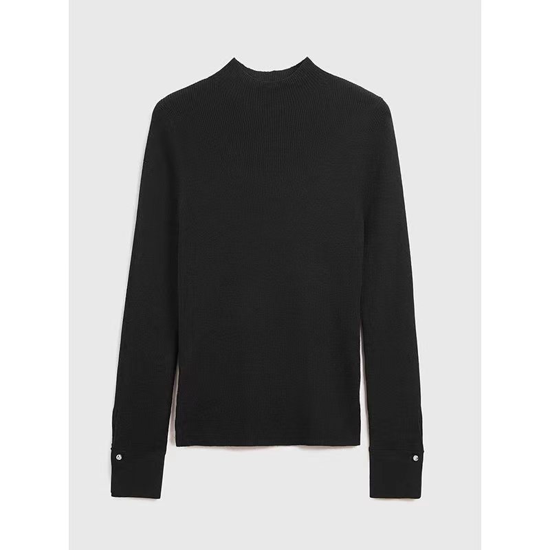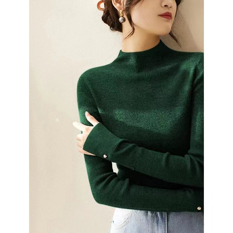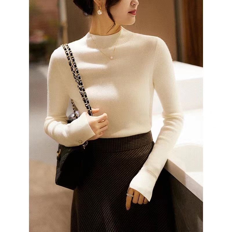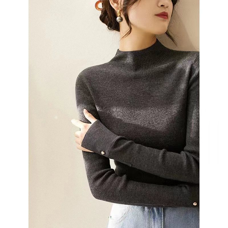 2025年の春の新商品のウールの半高襟のニットの木の耳元の色合わせの頭の底のシャツの上着の女性