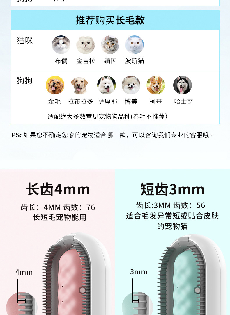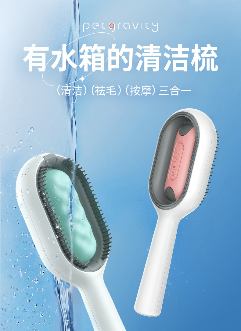 TEMUペット用吸引式水槽付きペット用コーム、浮毛除去ツール、猫犬用抜け毛取りコーム、毛並みを整える猫用脱毛コーム