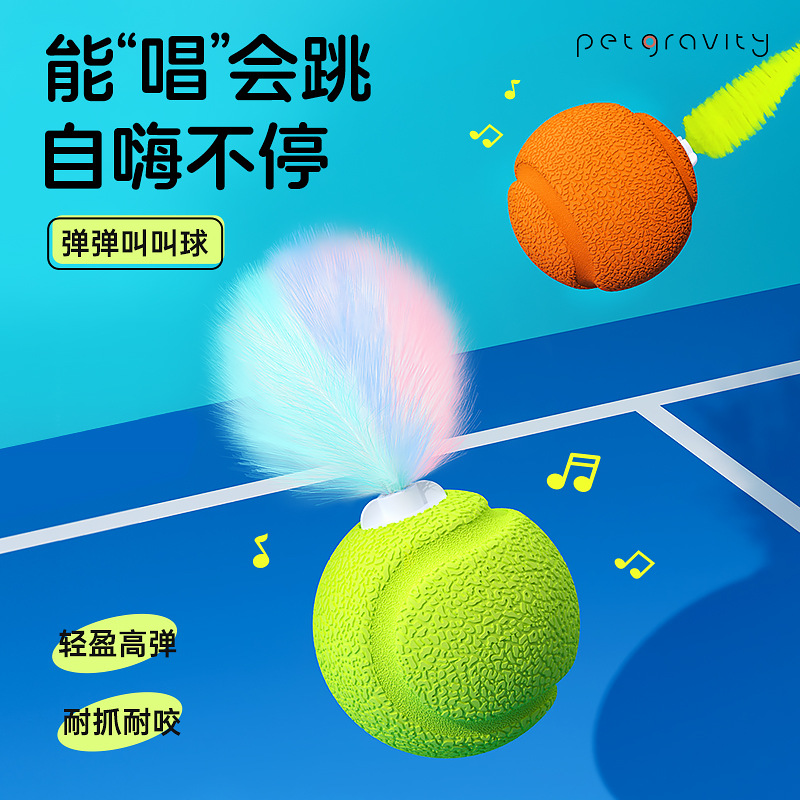 宠有引力弹弹叫叫球猫咪玩具自嗨发声羽毛宠物磨牙逗猫棒幼猫