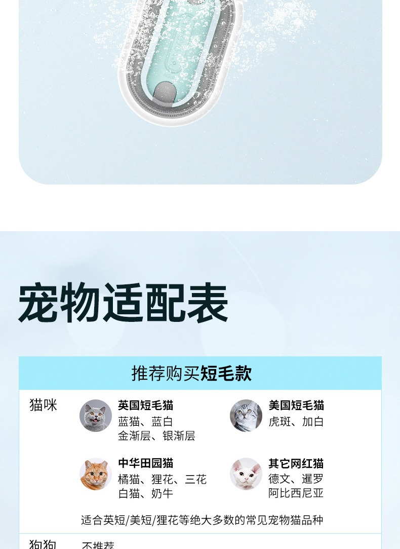 新しいタイプのペットは清潔にして毛を取り除きます。猫は洗濯しないでください。