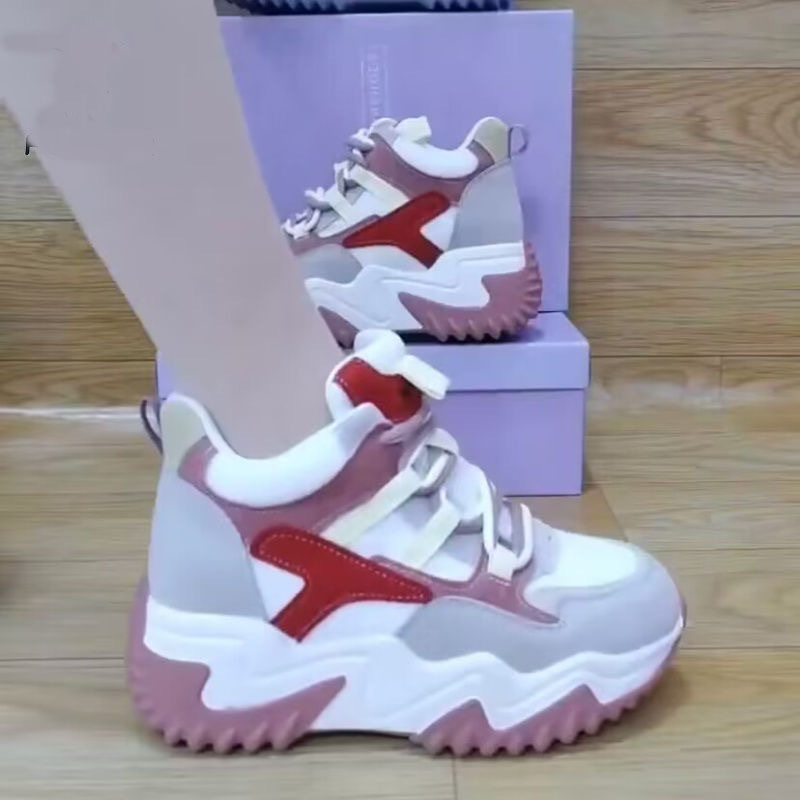 ヌバックレザーインナー身長増加お父さん靴 2025 秋厚底婦人靴多用途カジュアルファッション身長増加スポーツお父さん靴