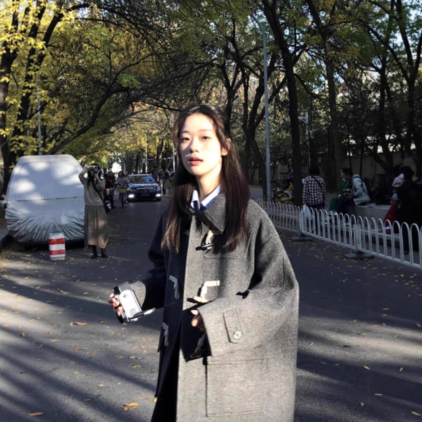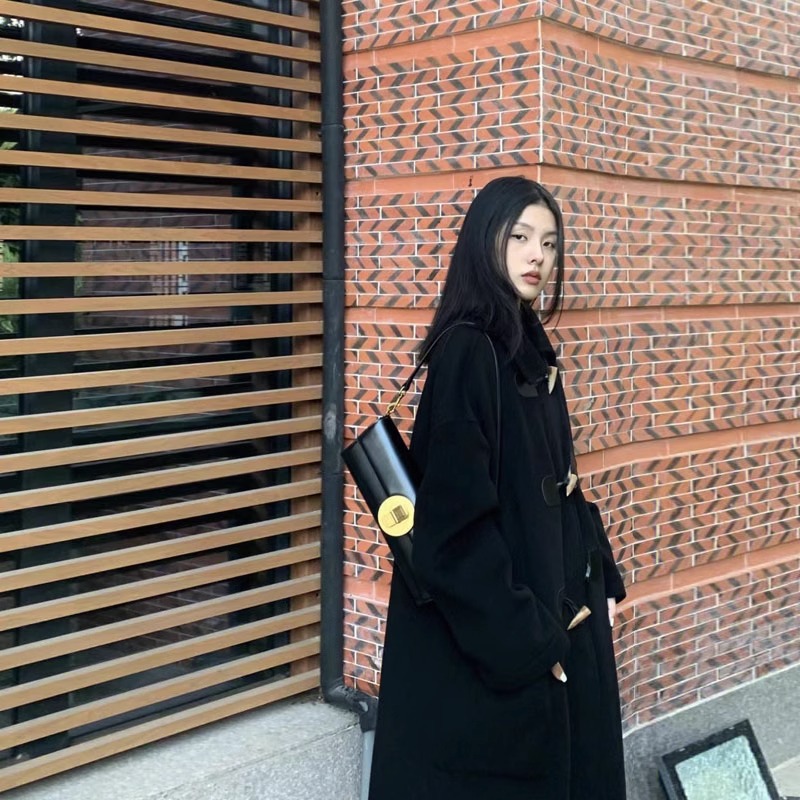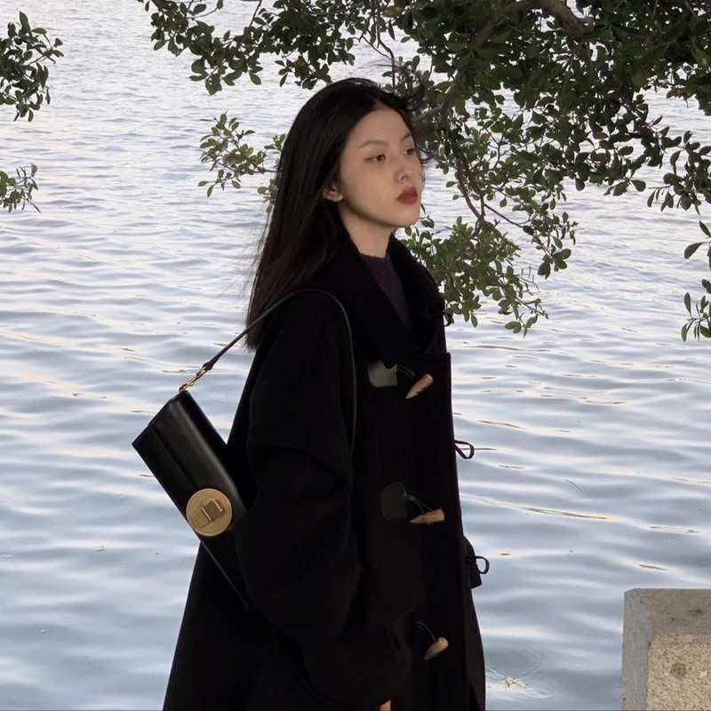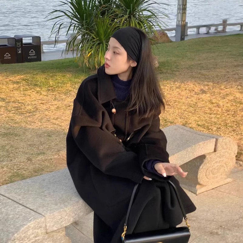 喔歌牛角扣呢子大衣女2025秋冬季新款毛呢外套高级感小个子慵懒风