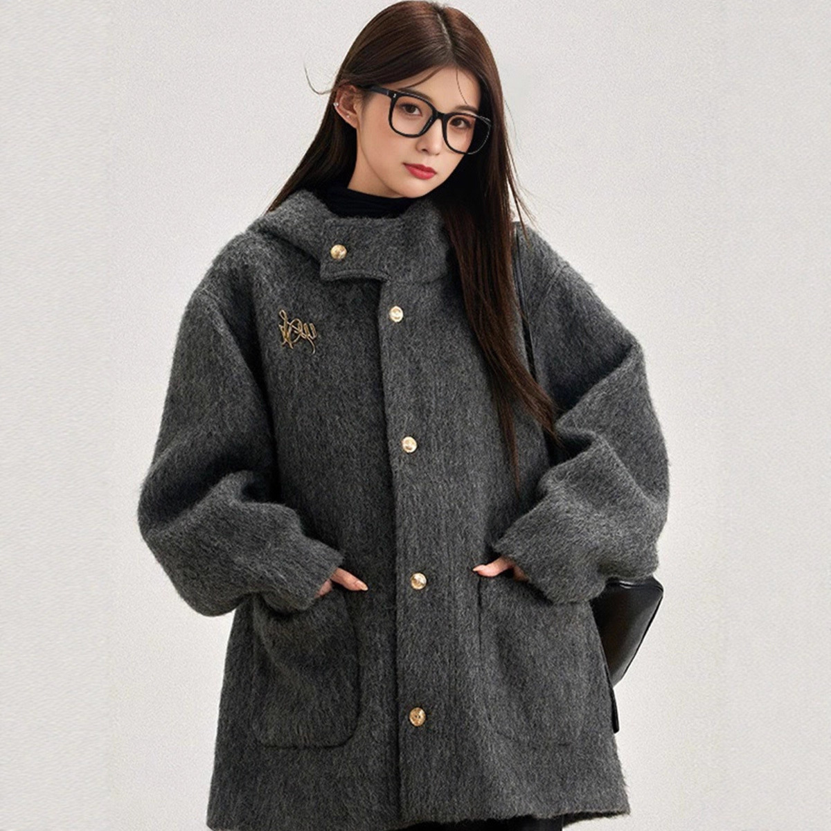 2025冬季新款韩系宽松慵懒风毛呢外套小众高级感气质小个子呢大衣