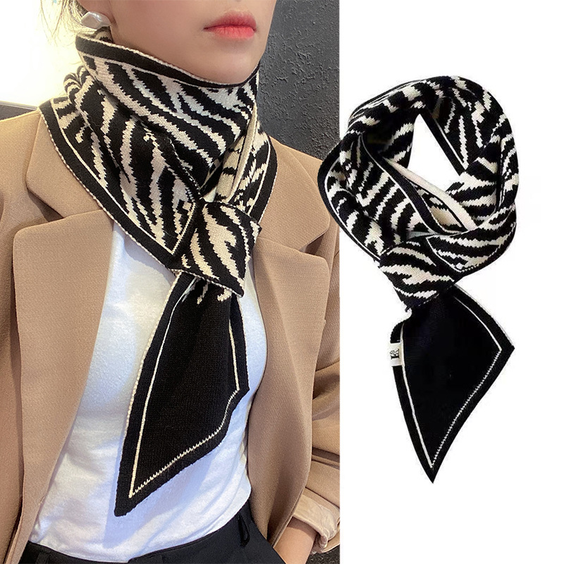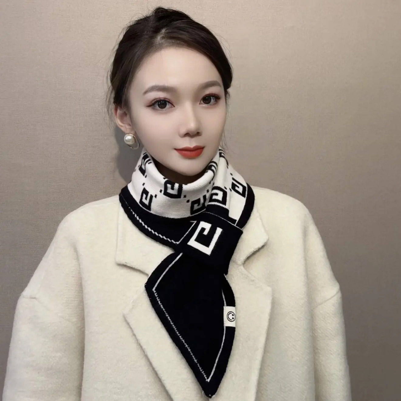 新款秋冬高档保暖护颈小围脖气质百搭双面针织毛线小围巾长领巾
