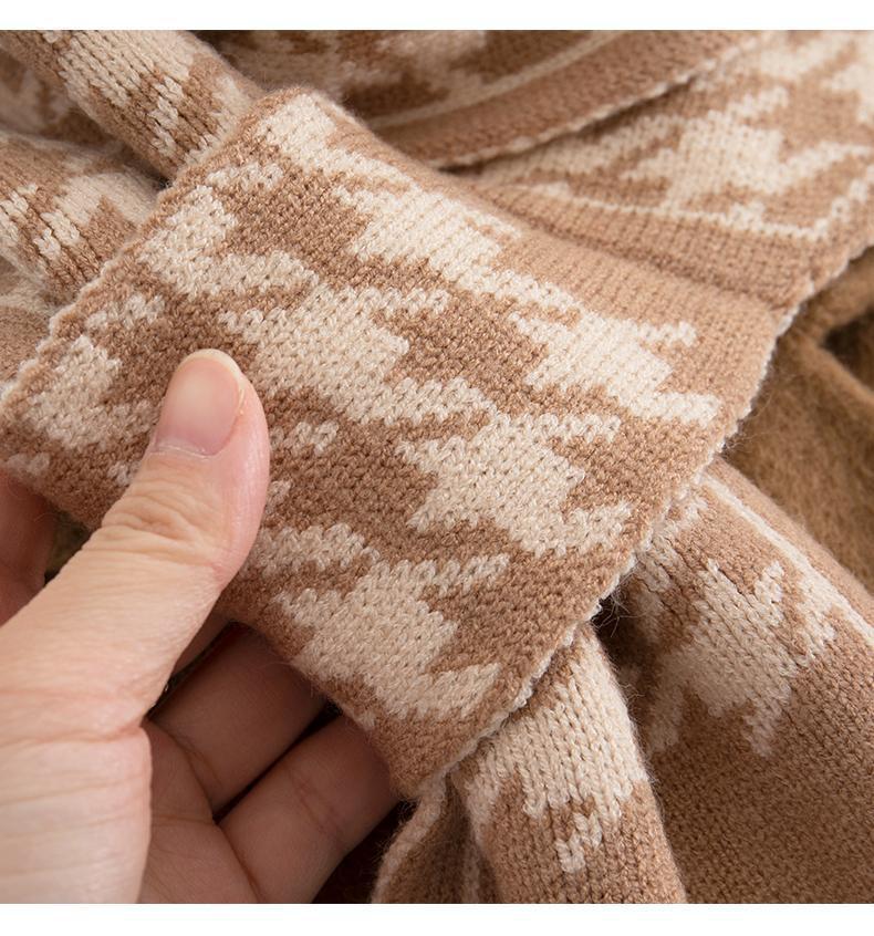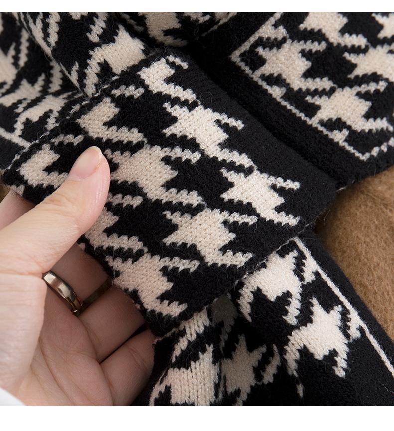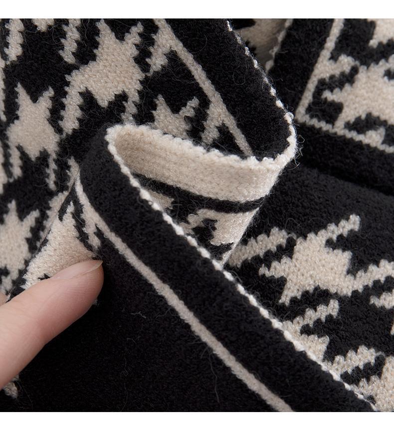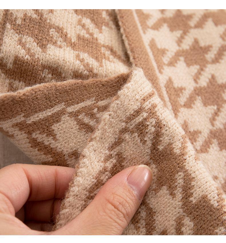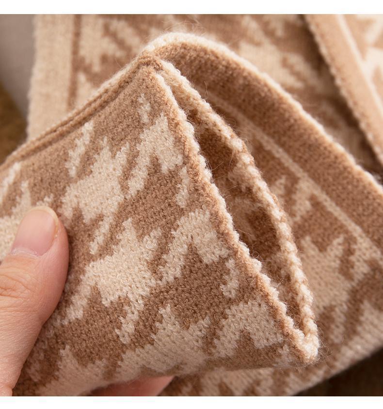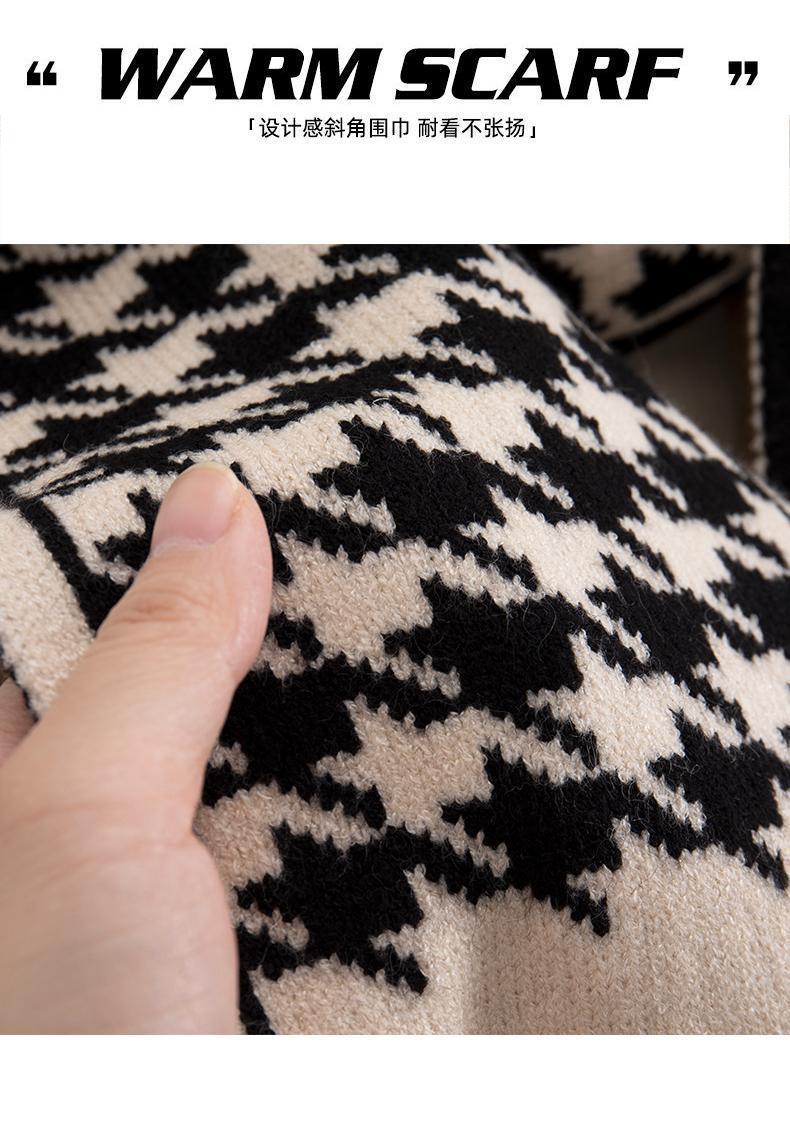 围巾女冬季韩版鹿毛绒交叉保暖风潮学院风针织千鸟格围脖百搭围巾