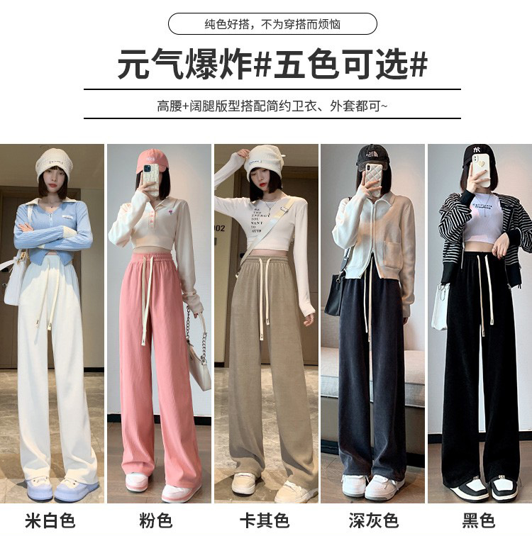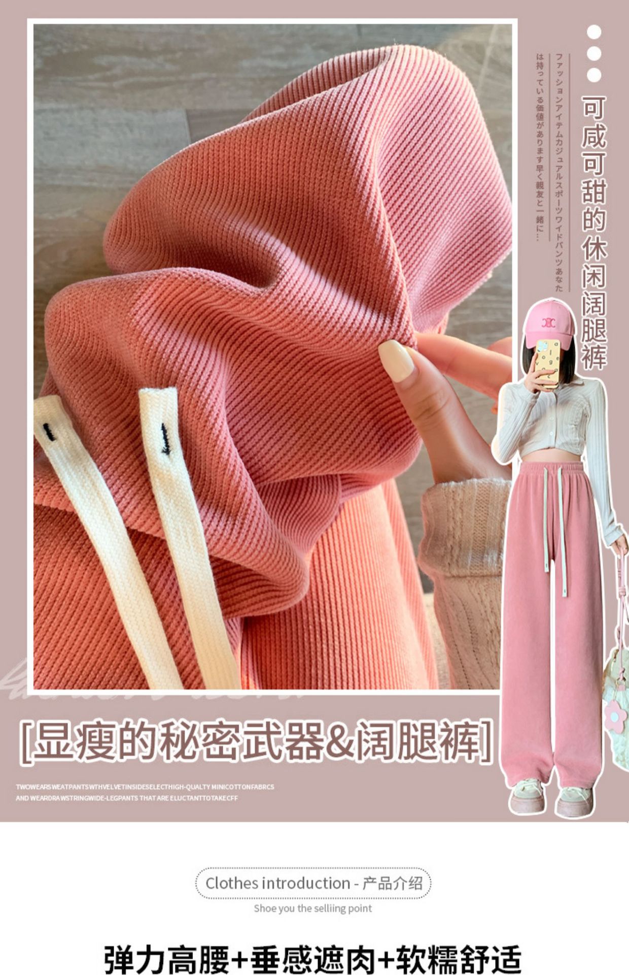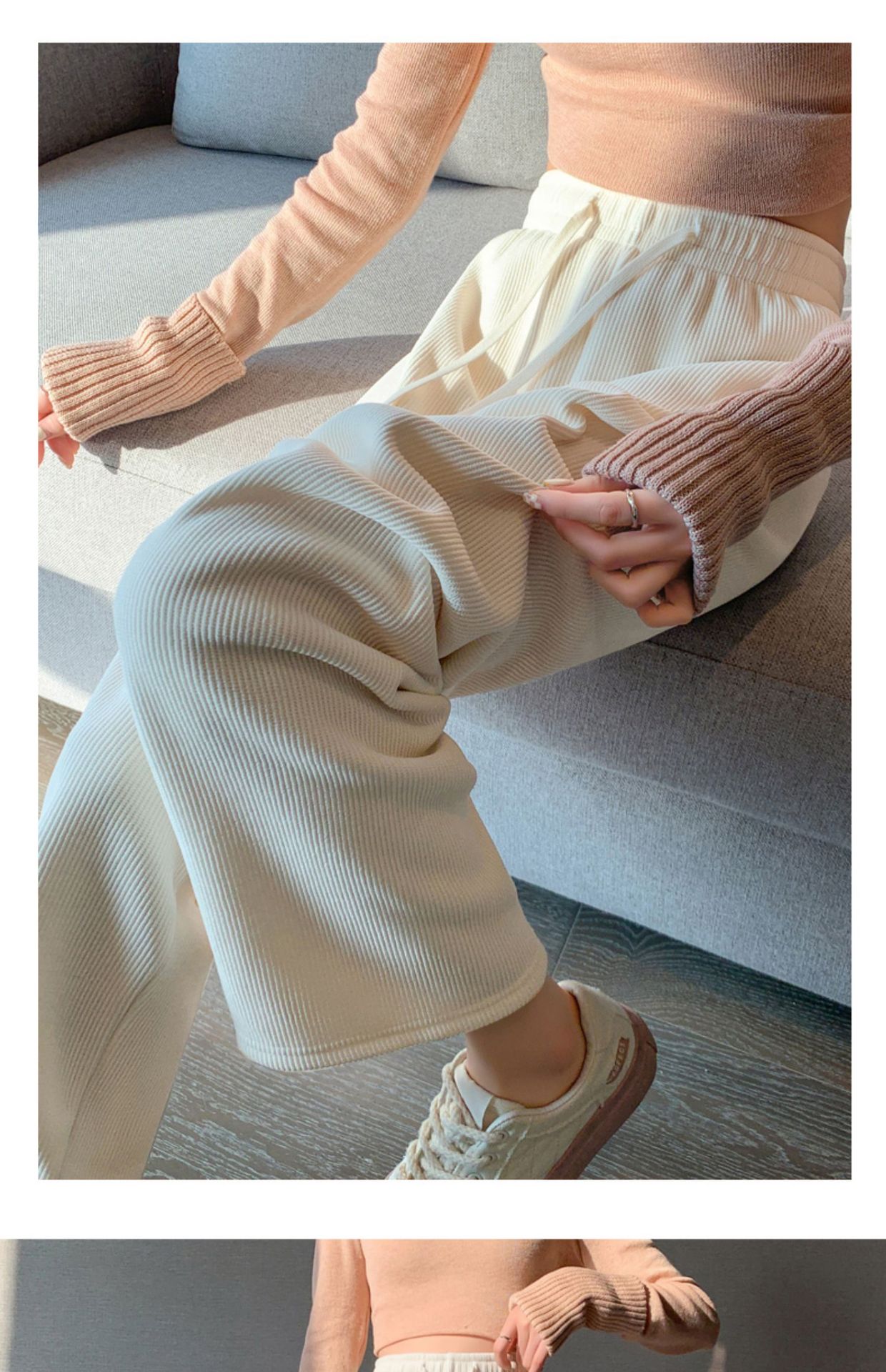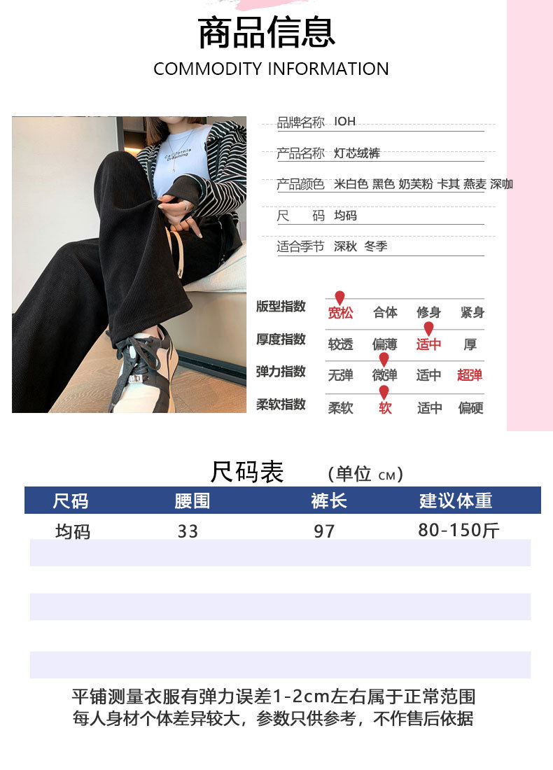 秋冬款欧棉绒阔腿裤女加绒灯芯绒裤子高腰垂感显瘦宽松直筒休闲裤