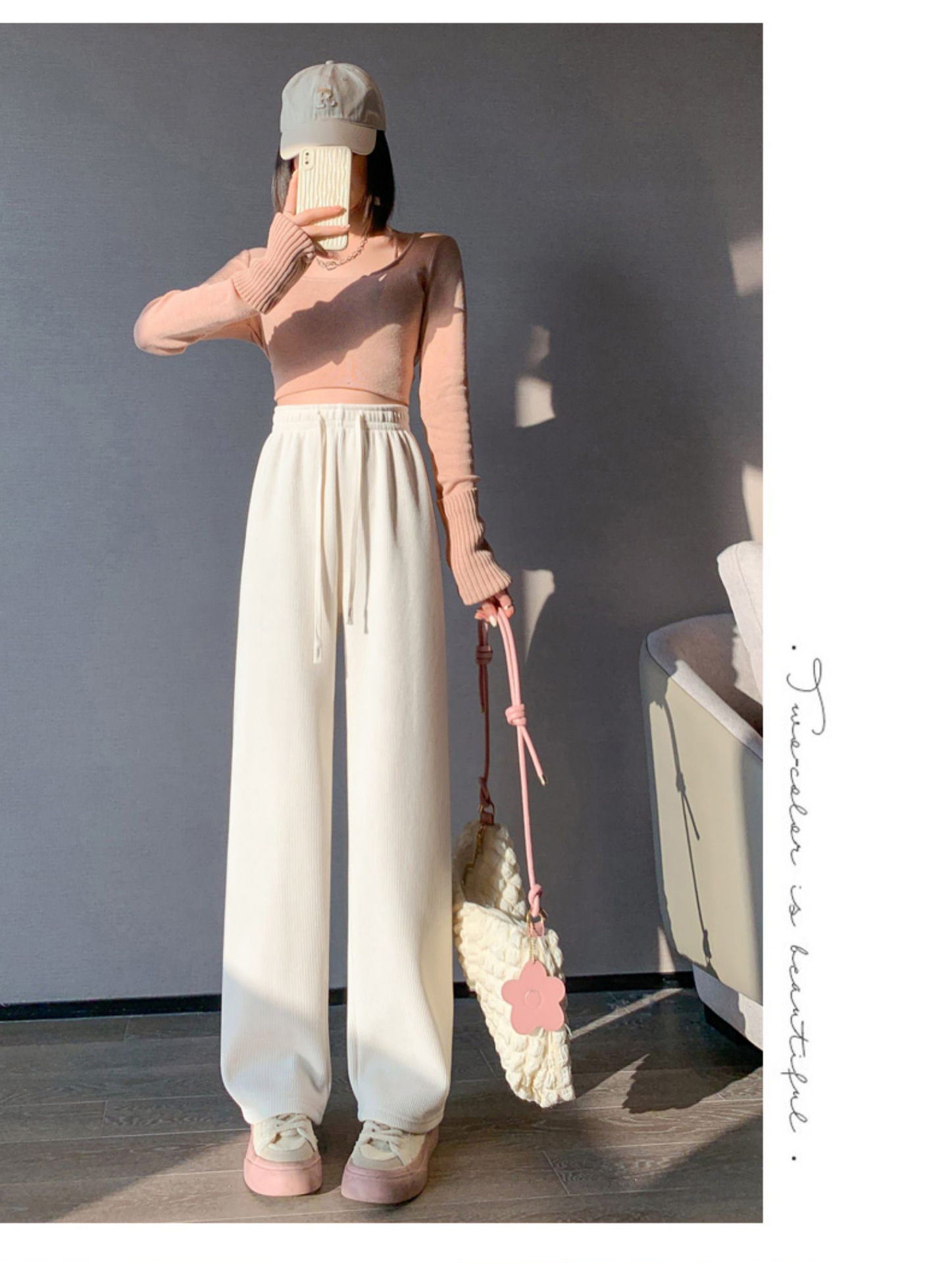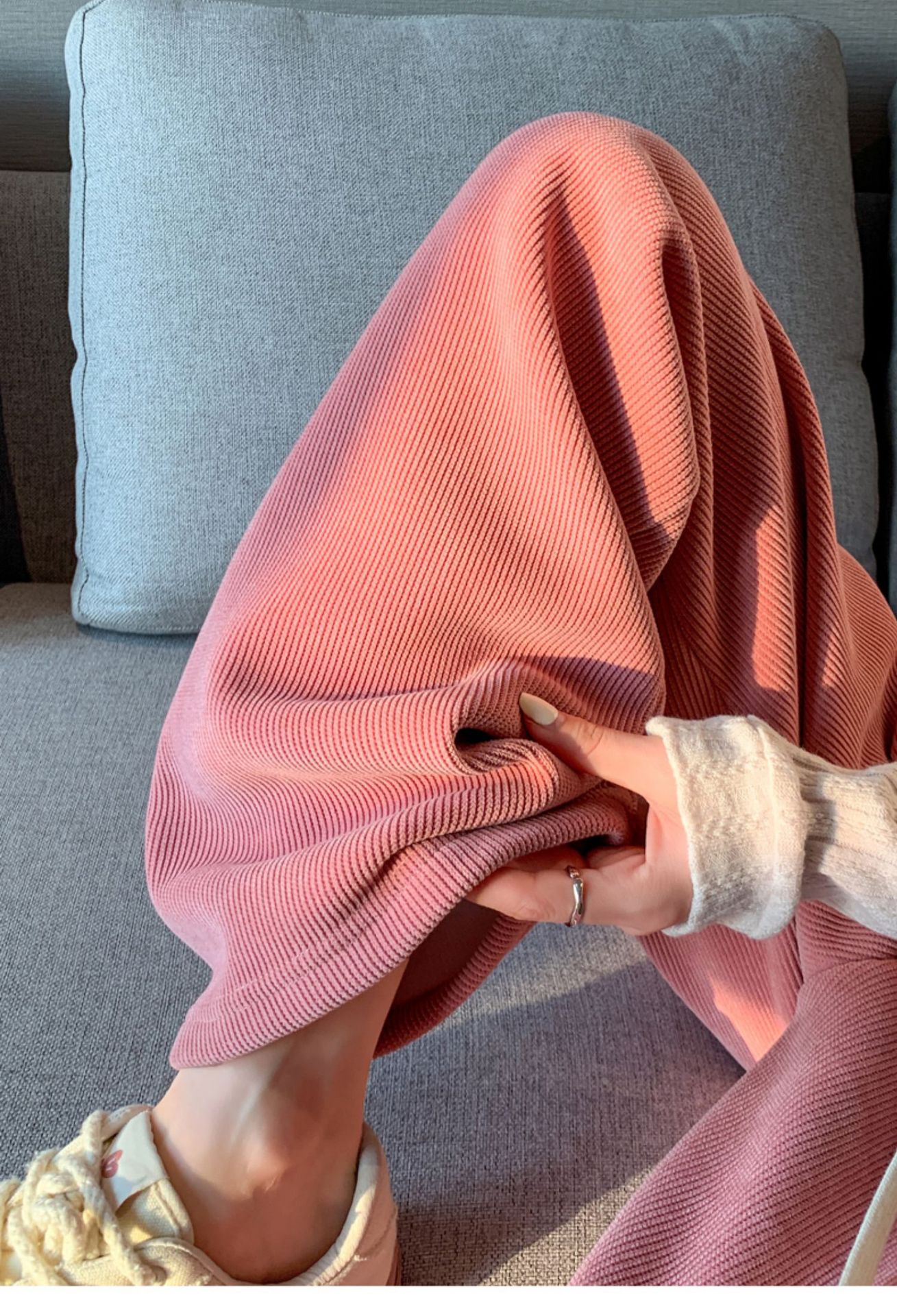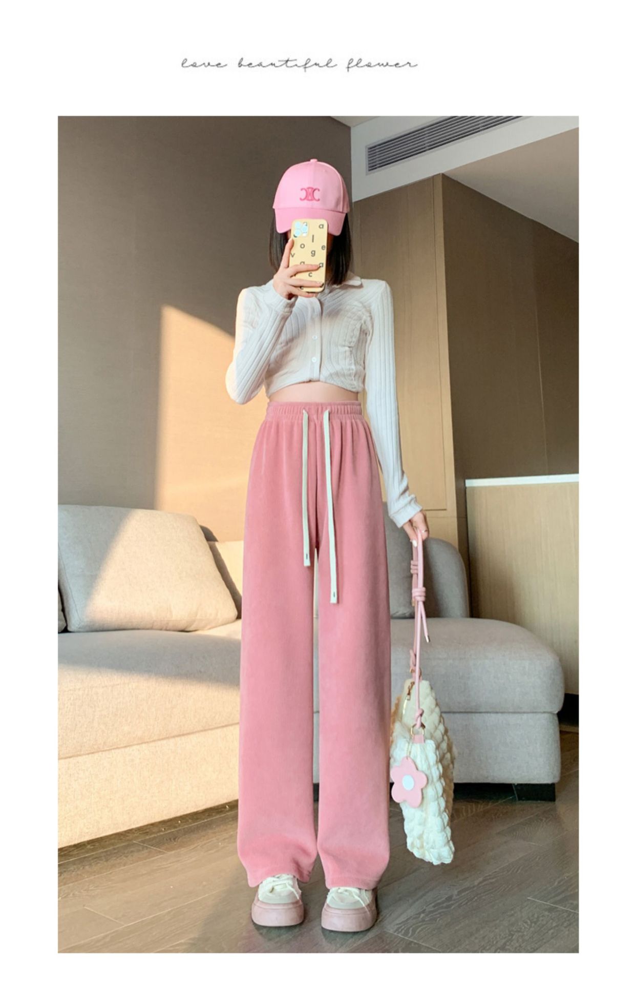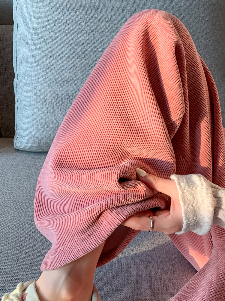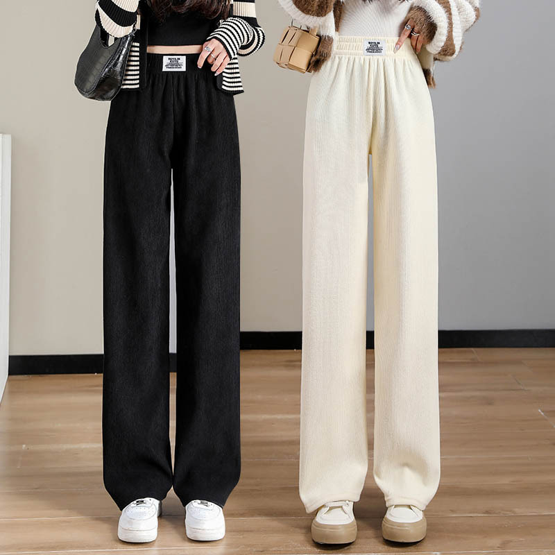 A2024-秋冬用裏起毛欧綿ベルベットカジュアルパンツハイウエストロング丈ストレートパンツコーデュロイワイドパンツ