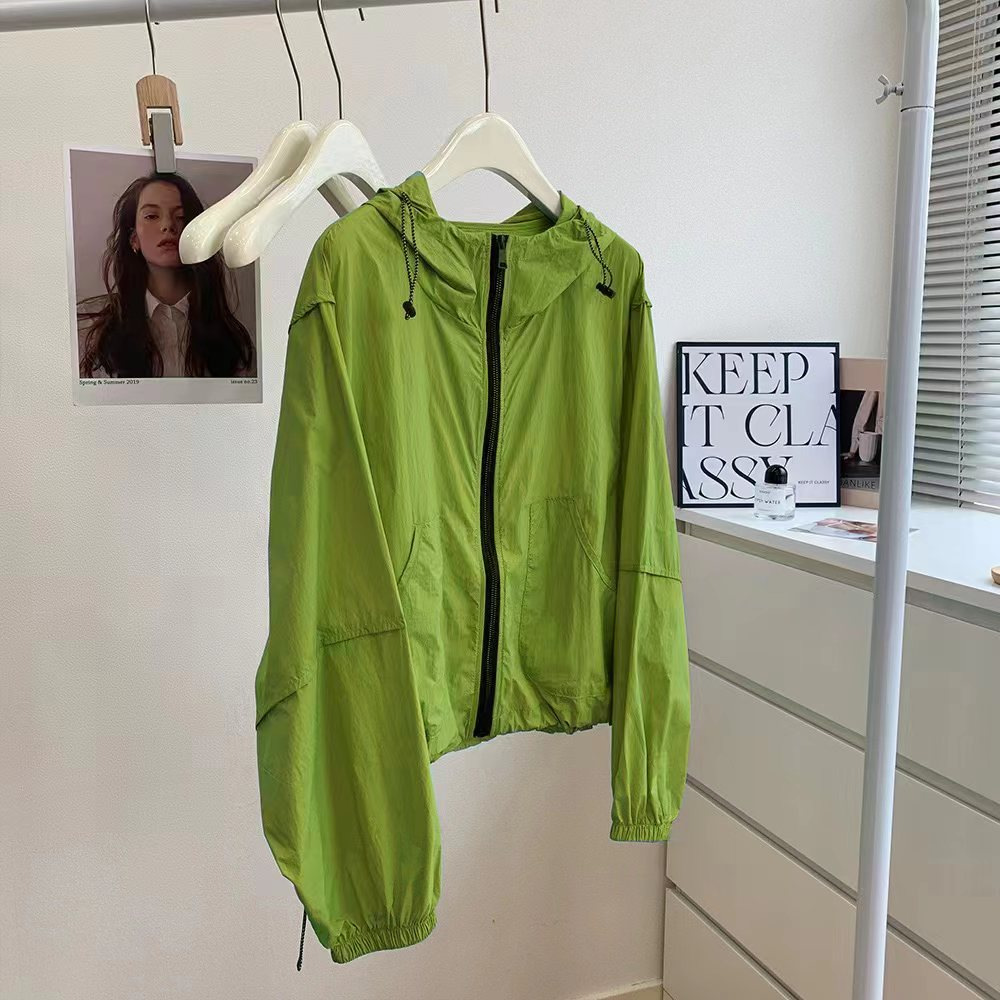 2025 Ling Xia Yi ドローストリングフード付きナイロン速乾性日焼け止め服ルーズアウトドア女性の旅行登山カジュアル服