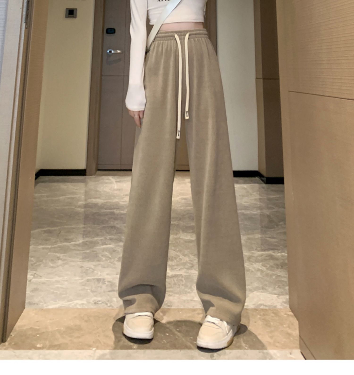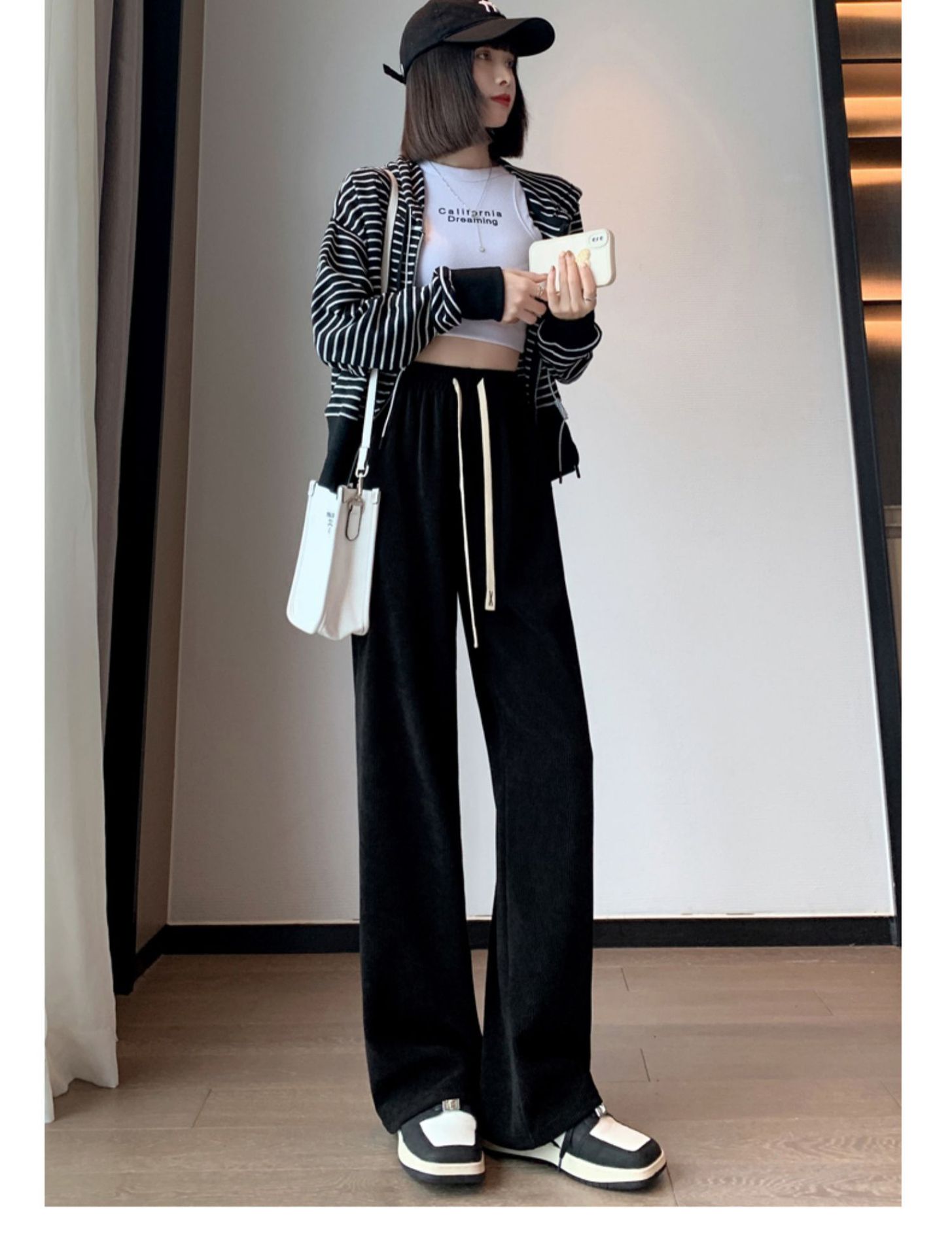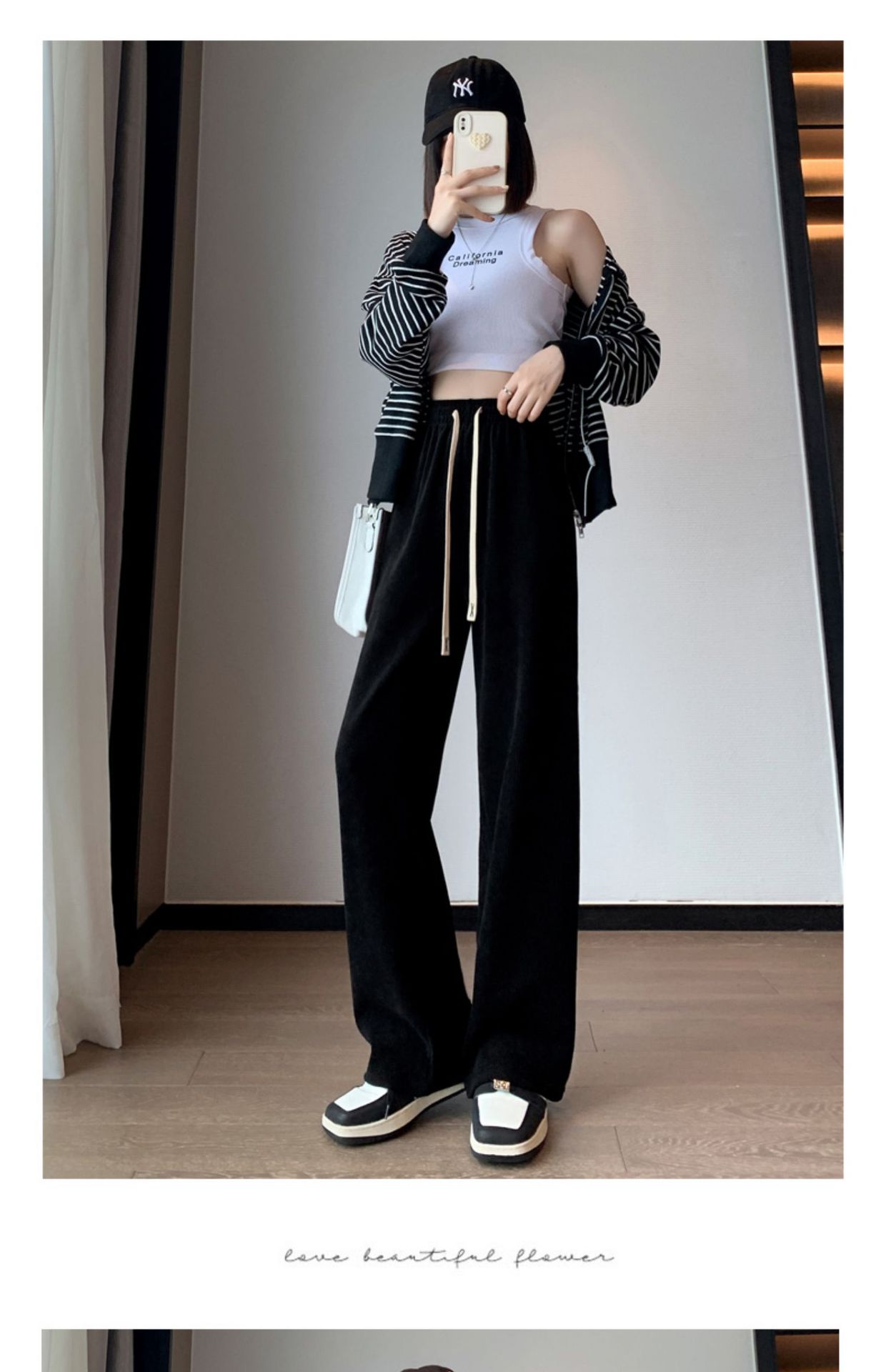 ベルベットの厚いワイドパンツの女性麦穂秋冬の新しい高腰ペンダント感黒ストレートゆるいカジュアルパンツのズボン