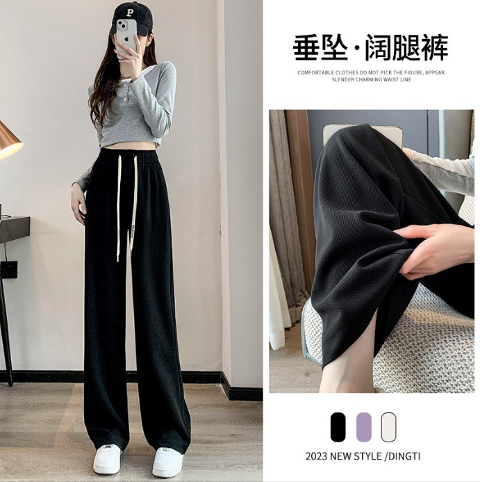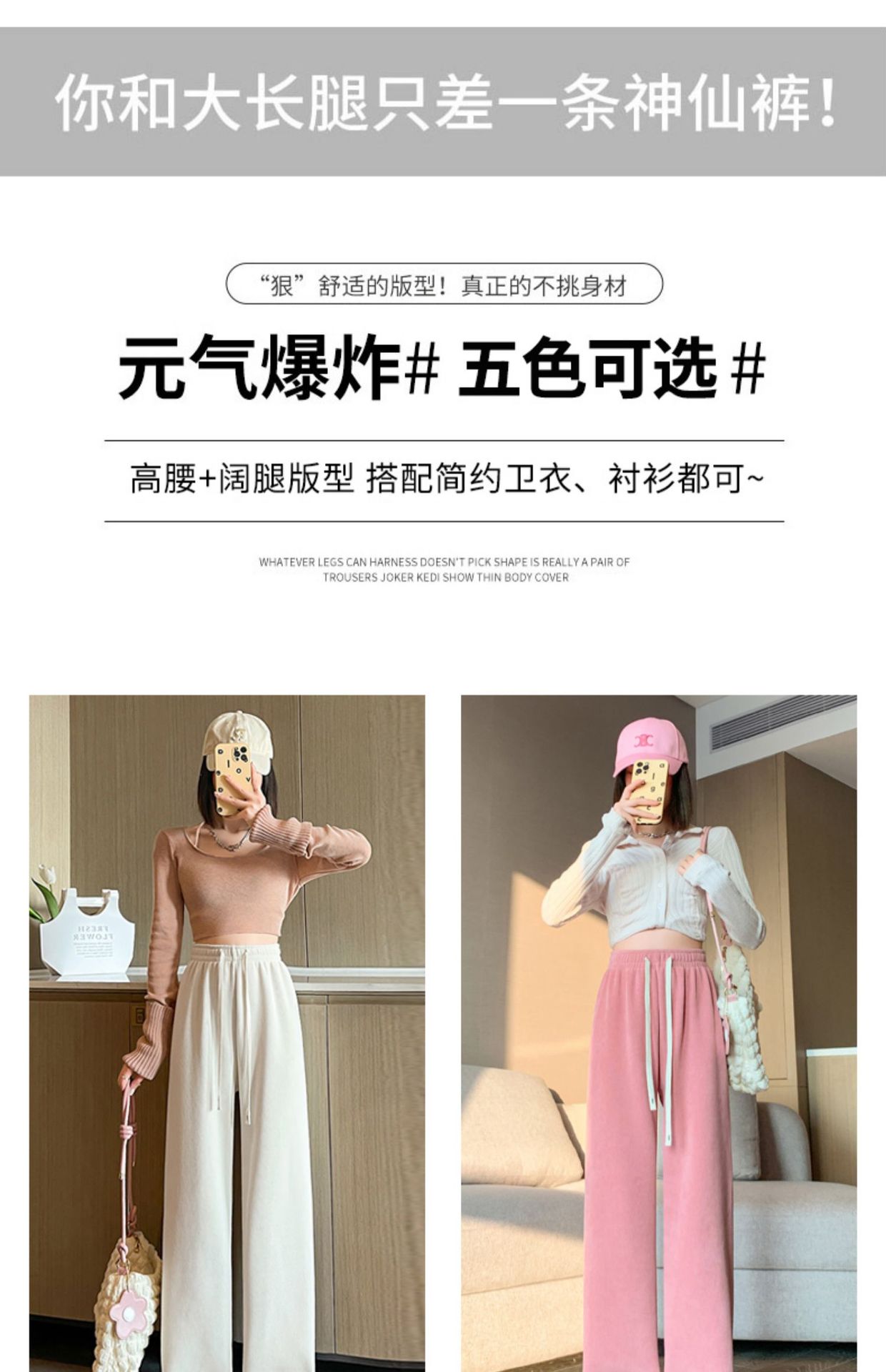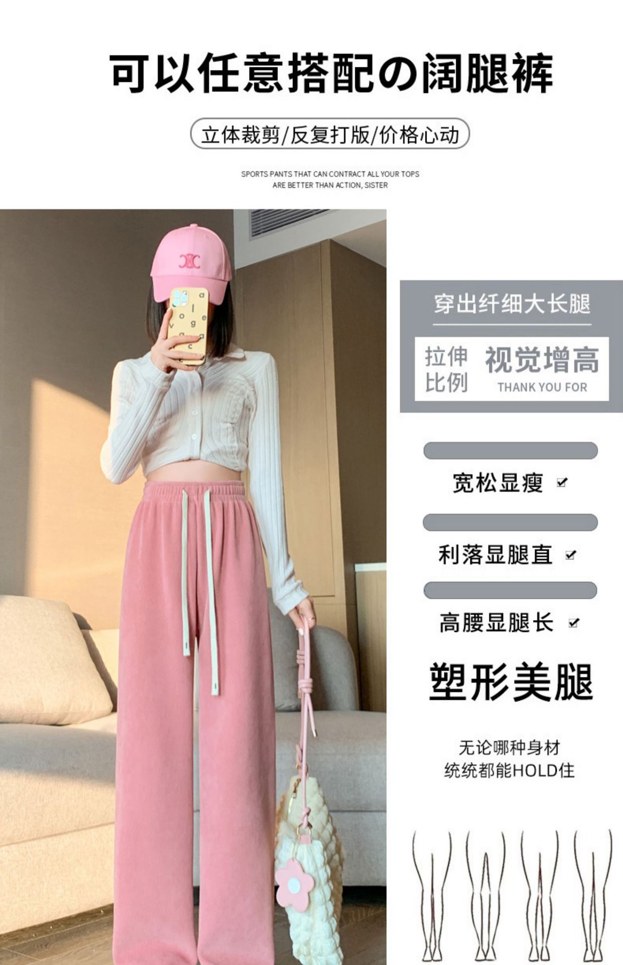 ベルベットの厚いワイドパンツの女性麦穂秋冬の新しい高腰ペンダント感黒ストレートゆるいカジュアルパンツのズボン