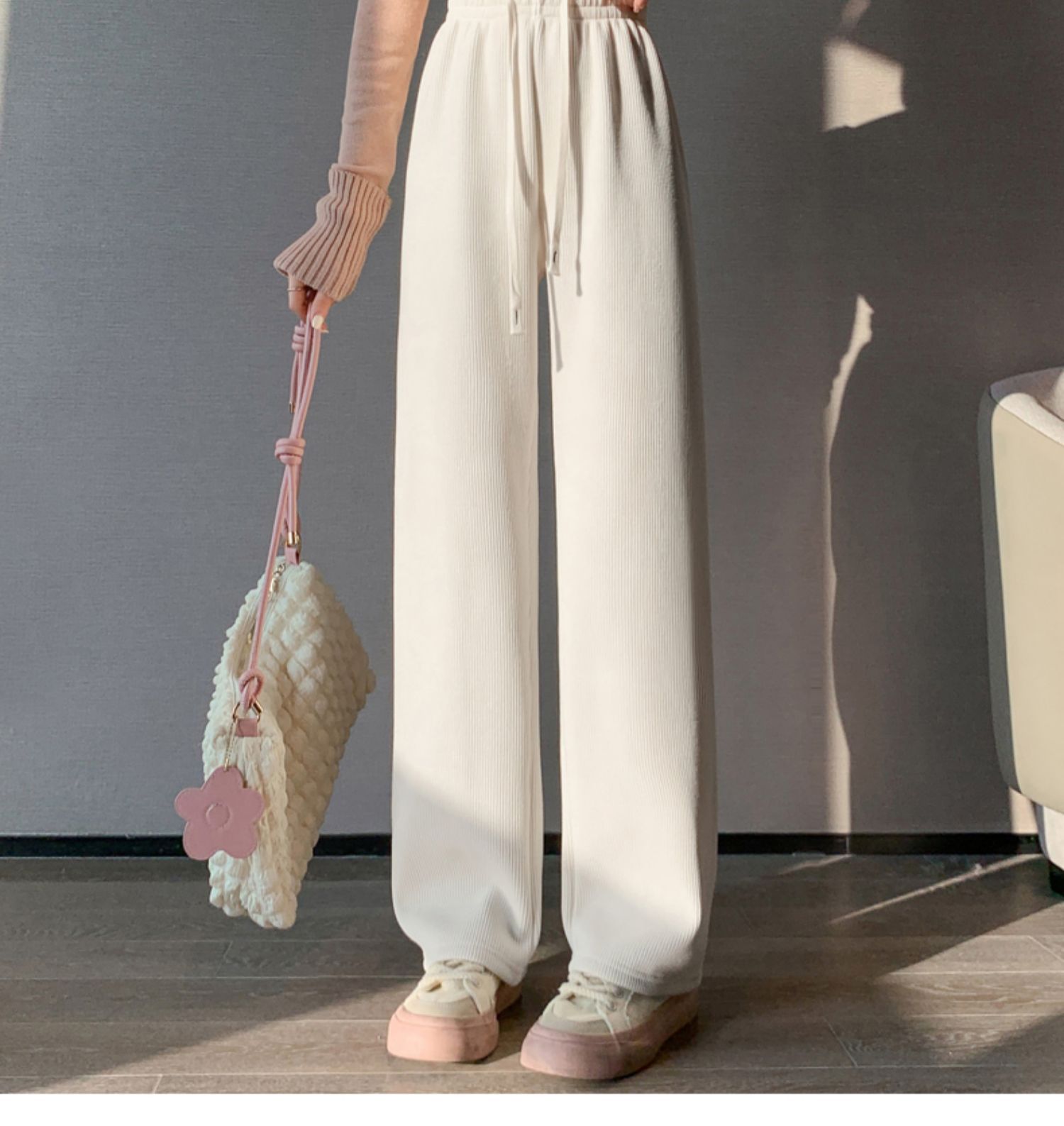 2025 コーデュロイパンツ、ヨーロッパ綿ベルベットワイドレッグパンツ、春と秋のハイウエストレディース万能ストレートパンツ、スリムで脚長効果抜群