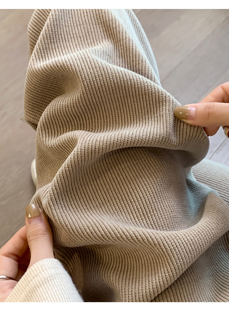 コーデュロイのワイドパンツの女性は秋冬に腰が高くて痩せています。