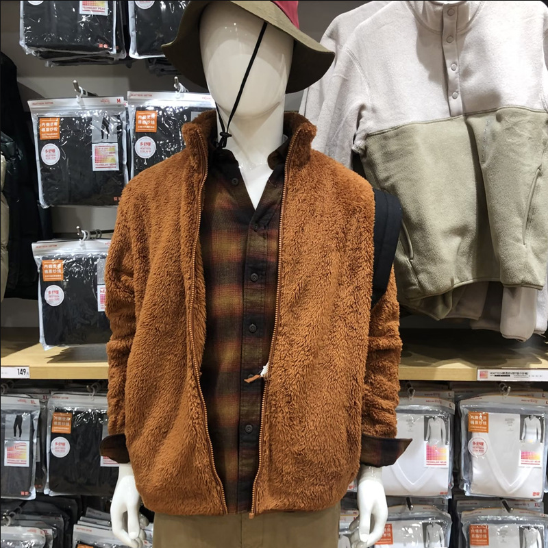 日系男装防风仿羊羔绒摇粒绒开衫长袖宽松圆领保暖外套冬季481183