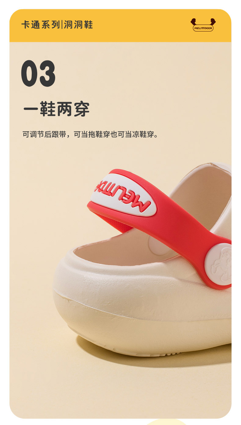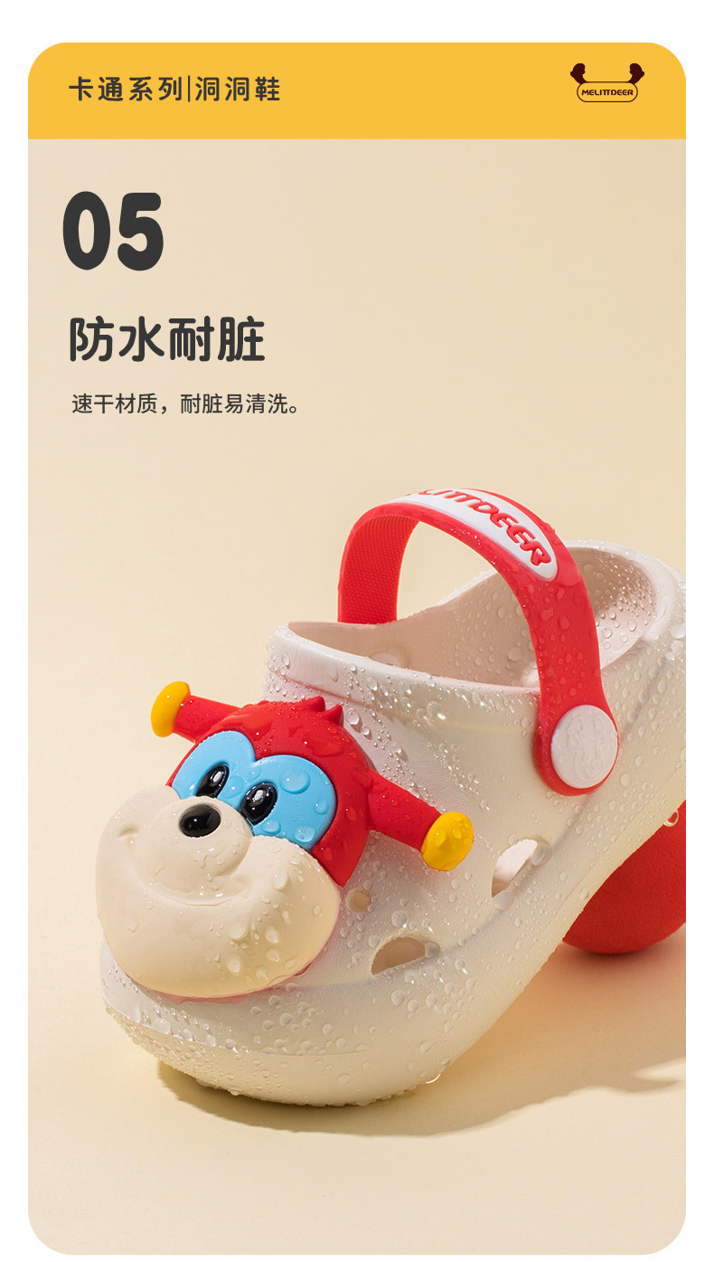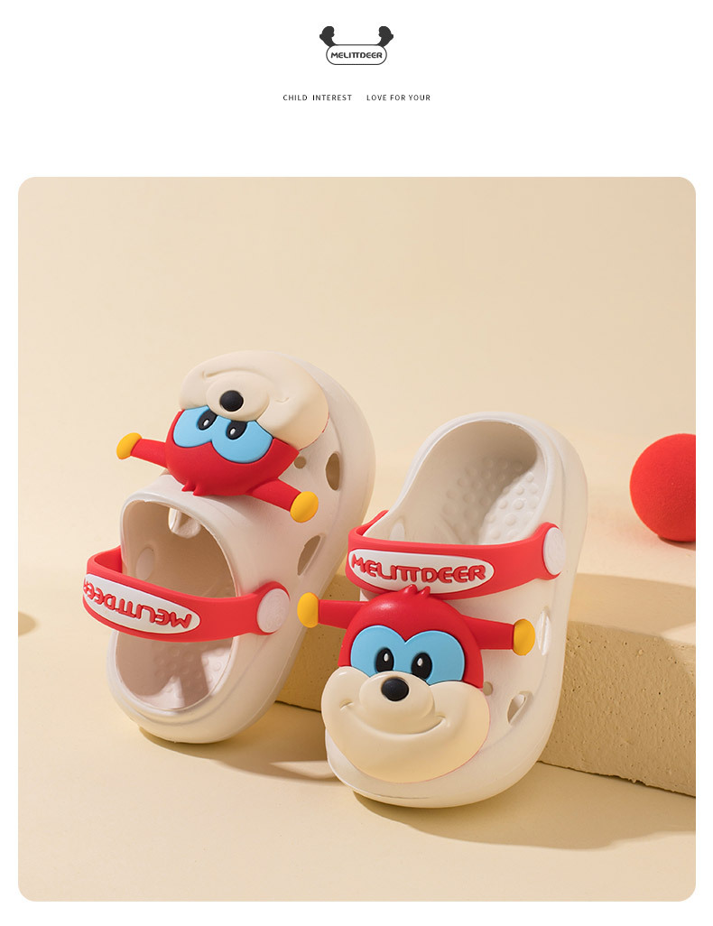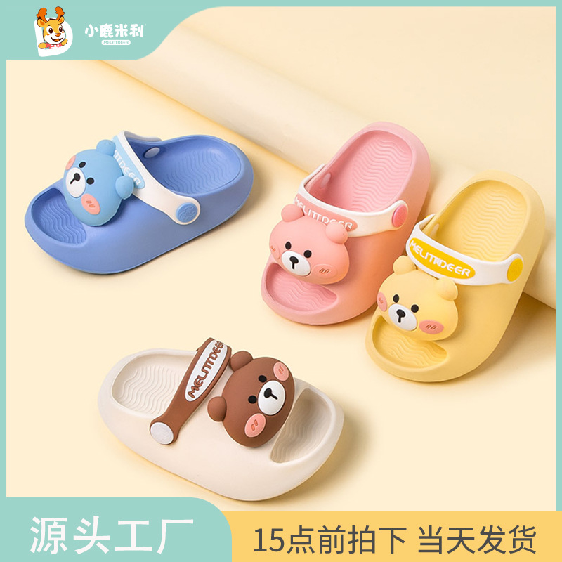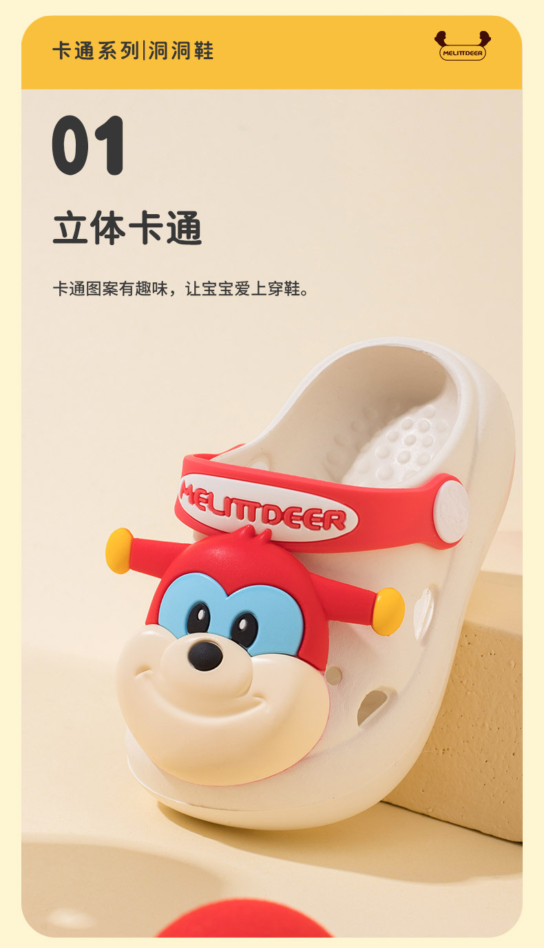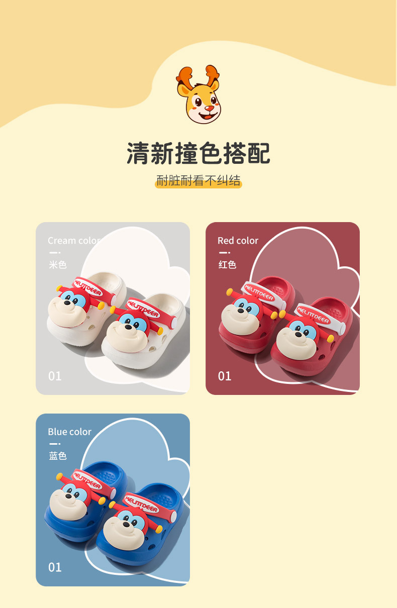 鹿の米利の夏の新型の子供のスリッパのかわいい漫画の柔らかい底の室内の外は子供の穴の靴の卸売りを縛ります。