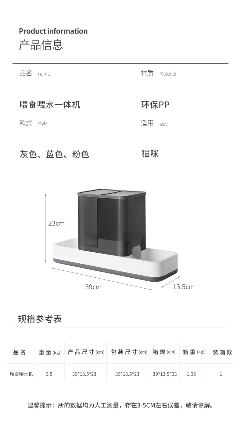 猫双碗自動飲水給餌一体器猫碗食盆大容量犬給餌機ペット用