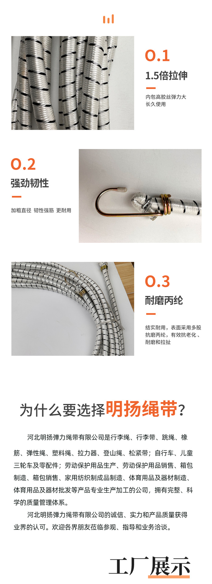 アウトドアキャンプテントのテンションロープは15cm固定バンドの弾性ロープとキャンプの天幕部品のロープを掛けます。