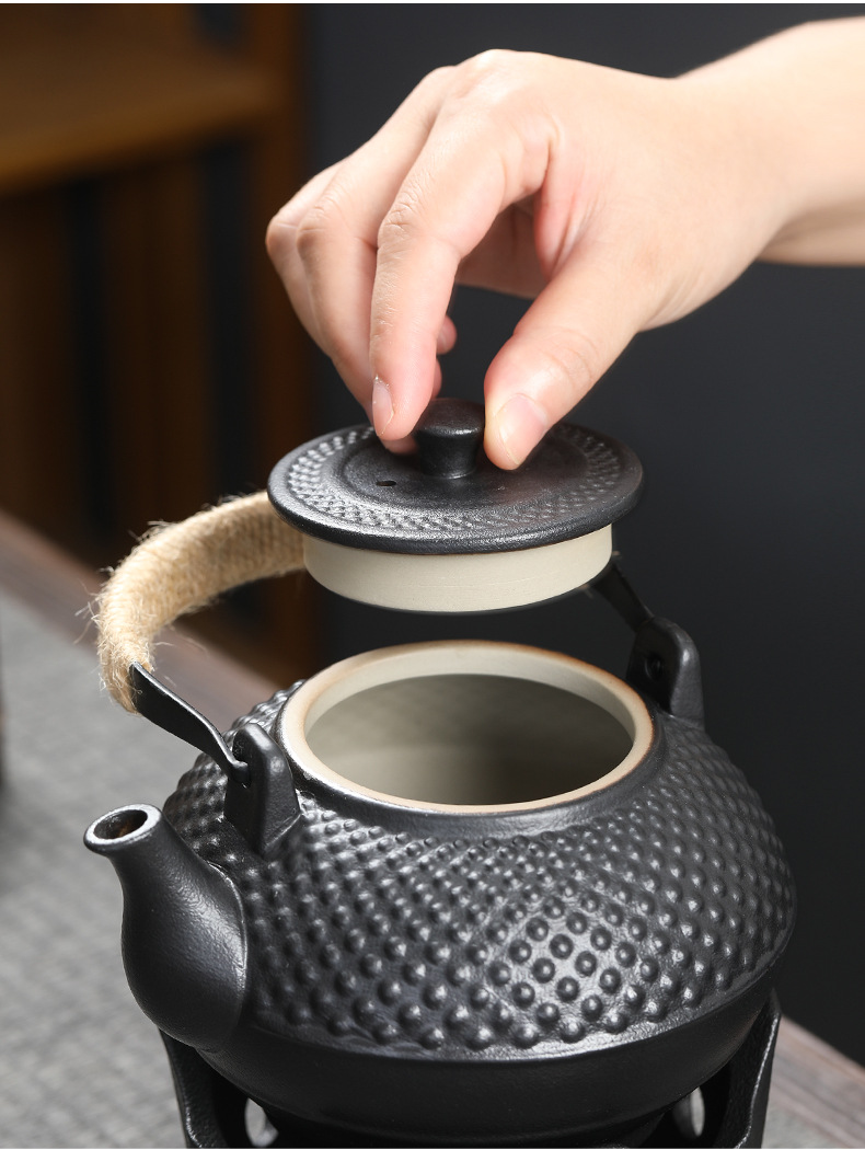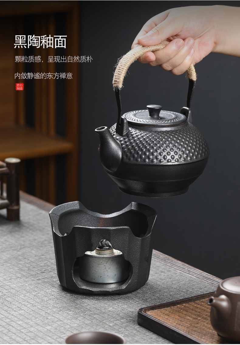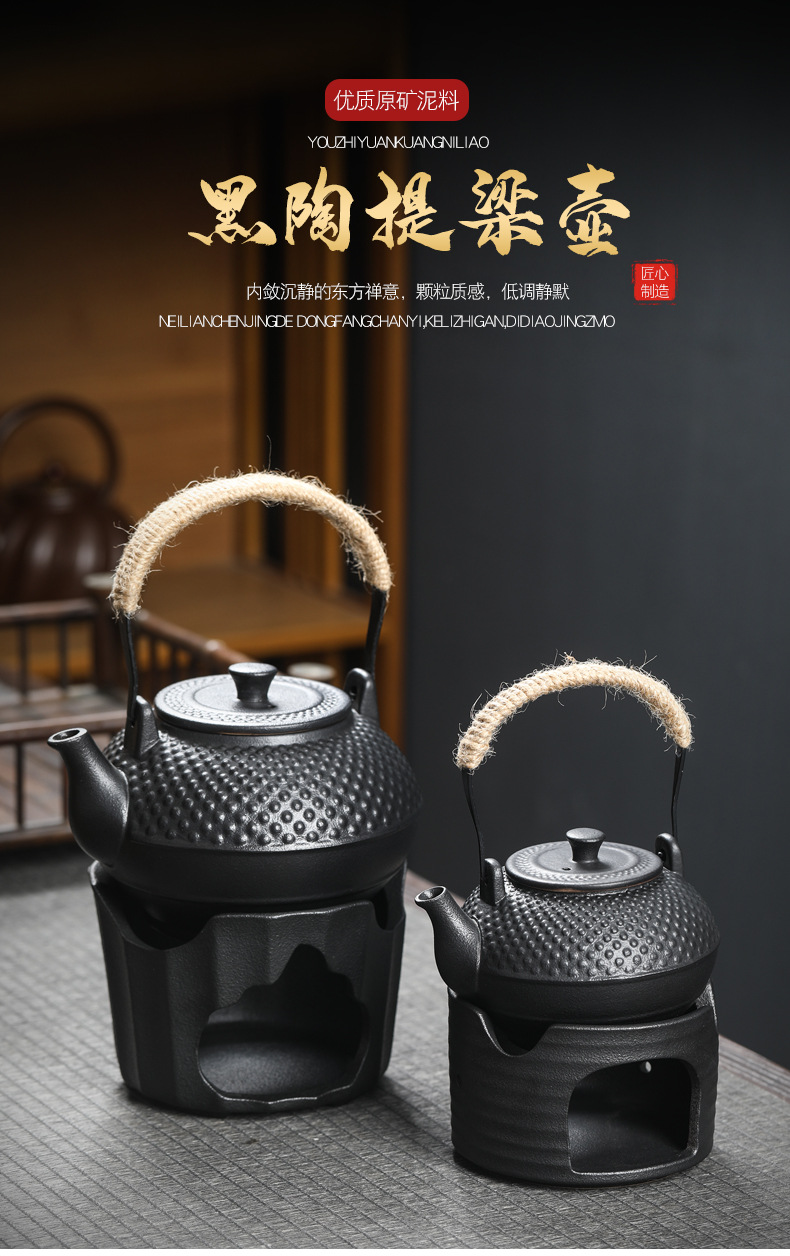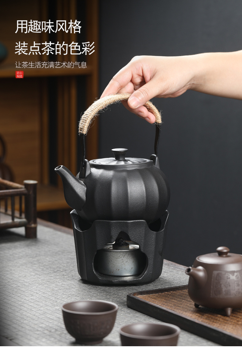 岩山囲炉煮急須黒陶大提梁壺カボチャ壺中国式レトロ温茶炉壺屋外キャンプ