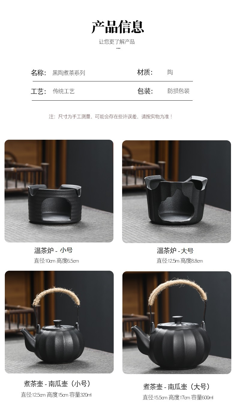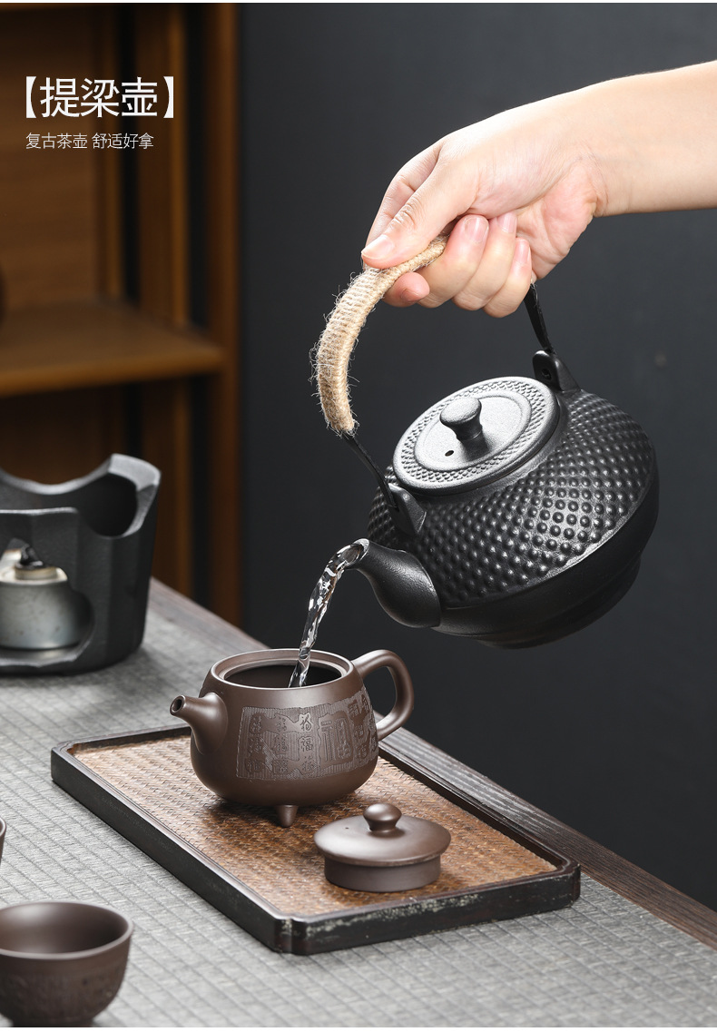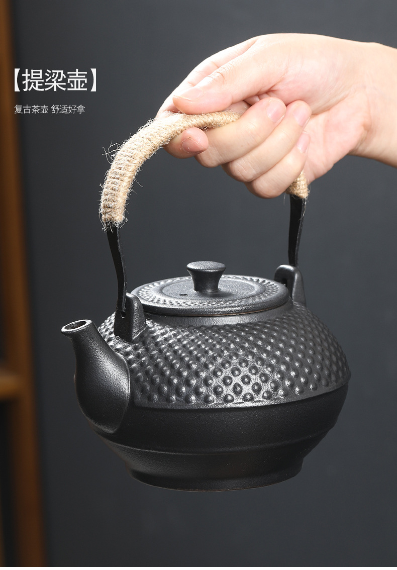 岩山囲炉煮急須黒陶大提梁壺カボチャ壺中国式レトロ温茶炉壺屋外キャンプ