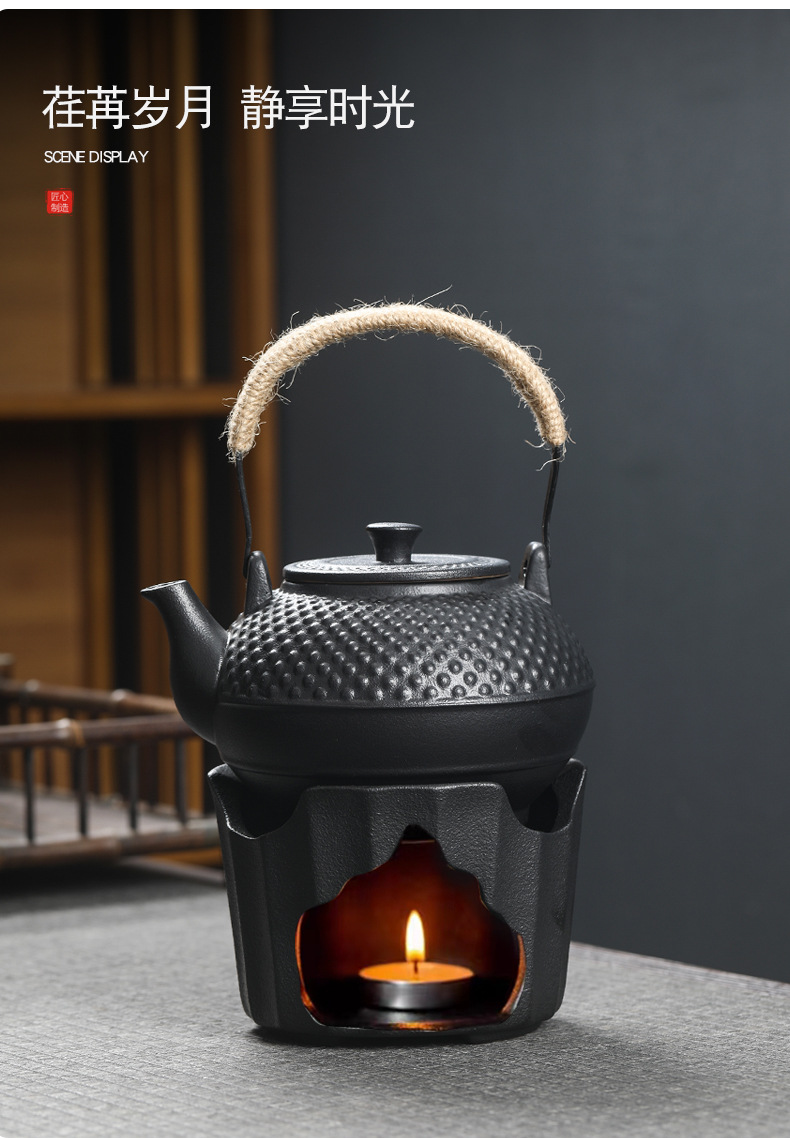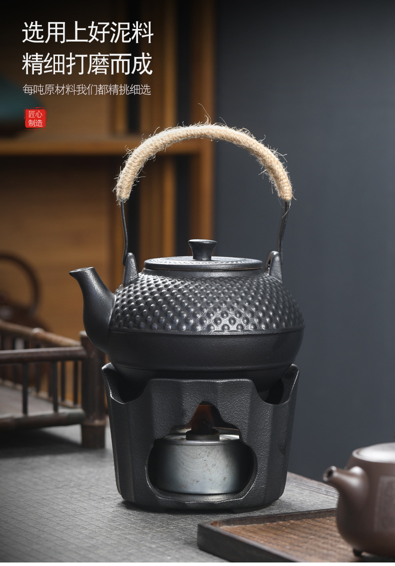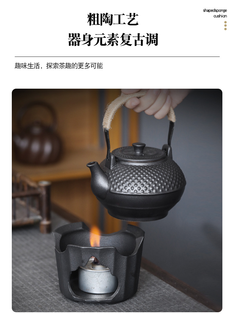 粗陶煮茶壶围炉煮茶壶可明火蜡烛提梁壶简易温茶套装户外泡茶壶无