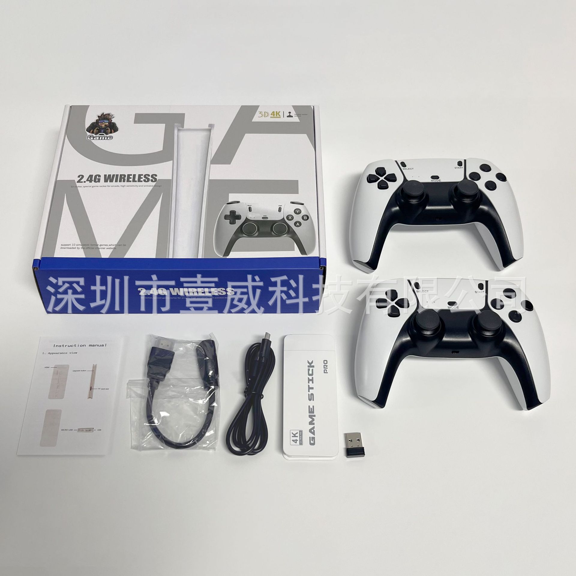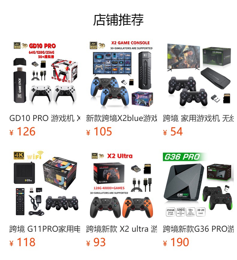 配件:产品主机*1手柄*2 手柄接收器*1 说明书*1 USB电源线*1 HDMI转接线*1 TF卡*1