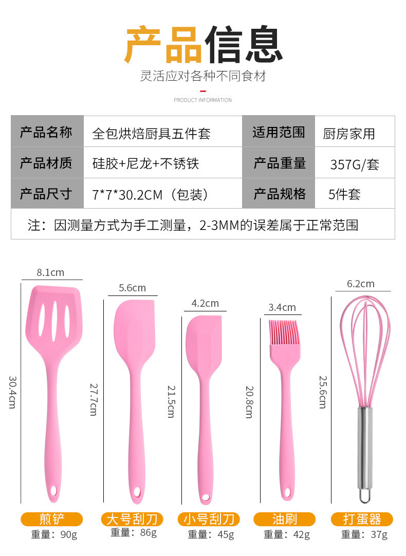 卸売りシリカゲル焙煎キッチンツール5点セット非粘着調理器具セットスクレーパー全5点セット人気スポット