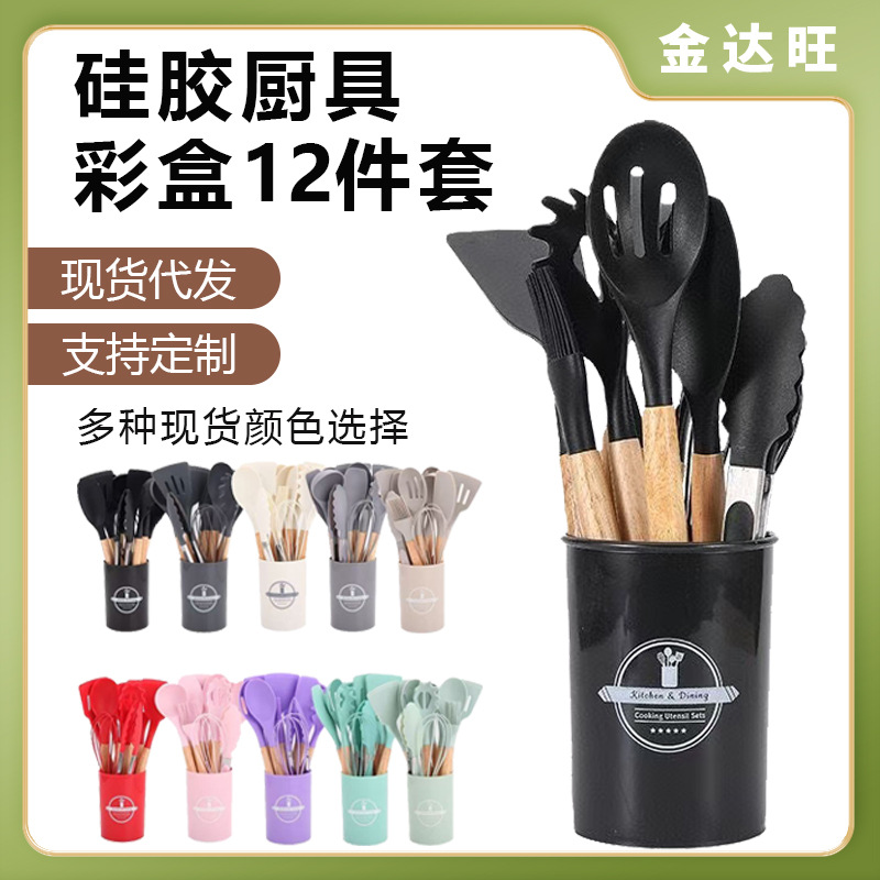 クロスボーダースポット木製ハンドルシリコン家庭用キッチンツール12点セットノンスティック調理スパチュラスプーンキッチン用品セット