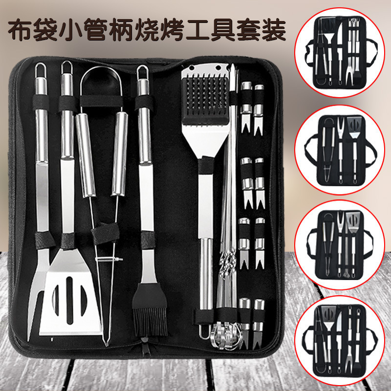 屋外バーベキューBBQツールフォーククリップブラシ付き小さなパイプハンドルツールバッグ9ピースセットステンレス钢焼き具セット