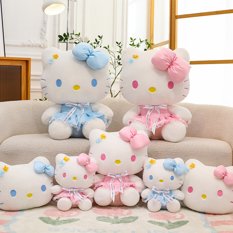 かわいい花kt猫公仔花スカート猫寝人形ぬいぐるみベッドに枕を抱いて女の子に誕生日プレゼントを贈る