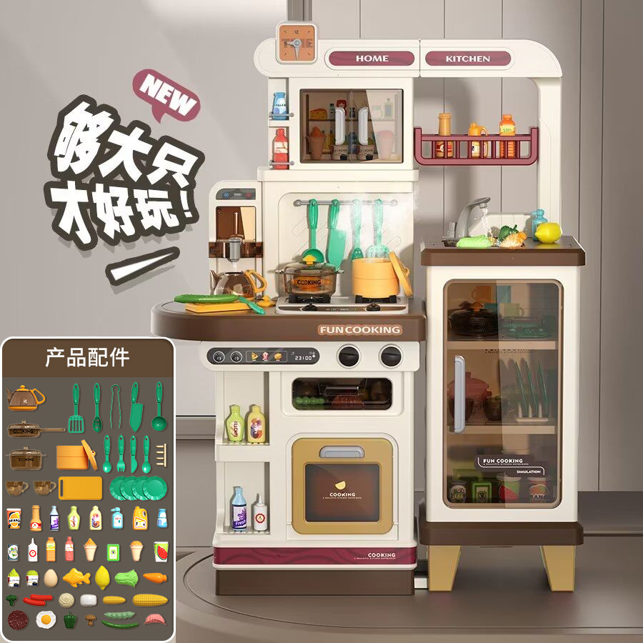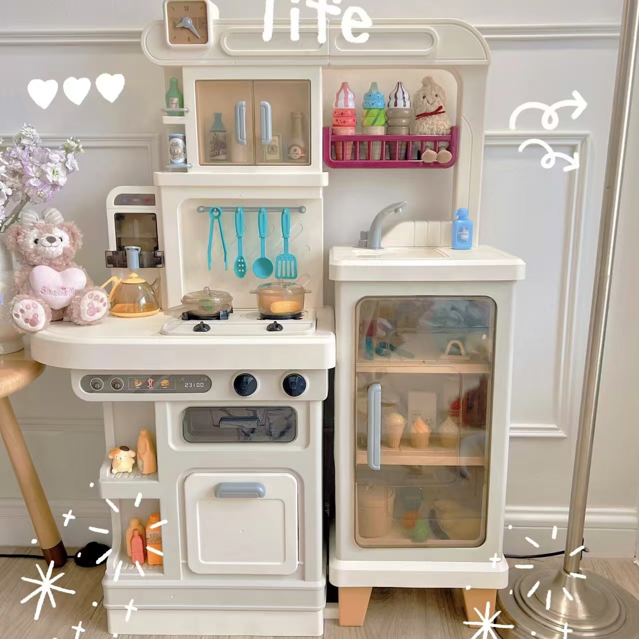 跨境贝比谷儿童过家家套装厨房玩具仿真厨具男女孩做饭台喷雾批发