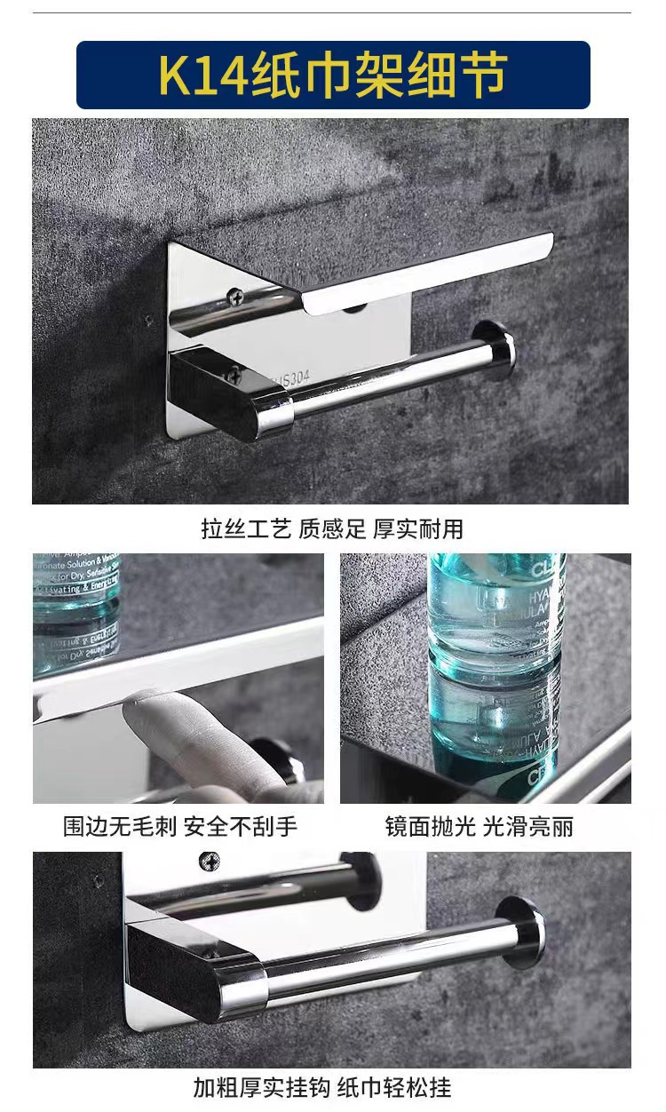 304ステンレスティッシュホルダートイレ携帯電話ハンガーホテルトイレロールホルダー浴室穴なしティッシュケース