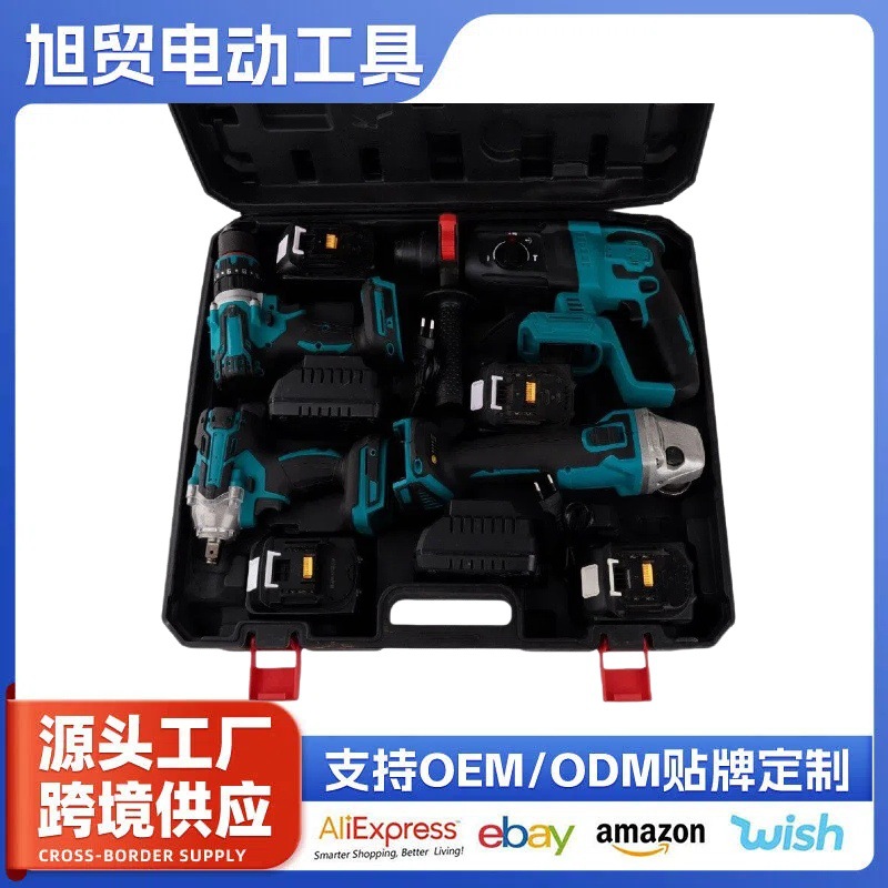 外贸无刷锂电工具四件套跨境无绳电动工具多件套无刷锂电手钻扳手