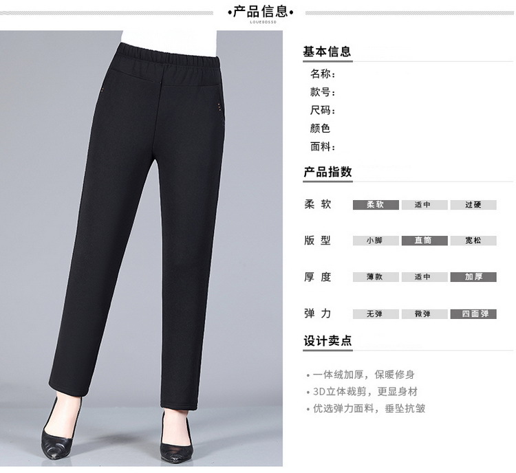 お母さんの秋冬の毛は、ベルベットの保温ストレートパンツの中で、高齢者の女装は腰が高くて痩せているストレートパンツを着ています
