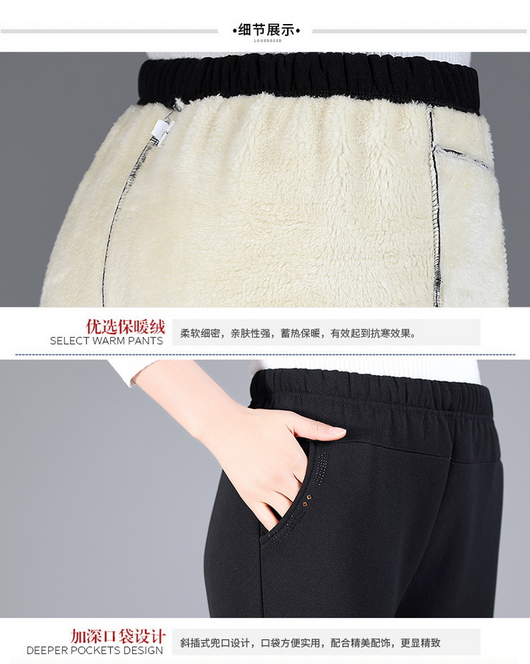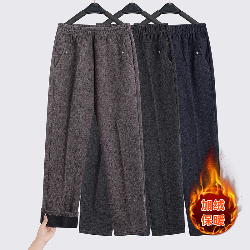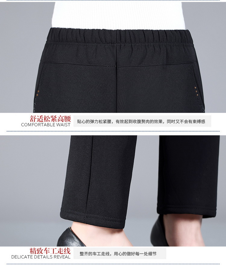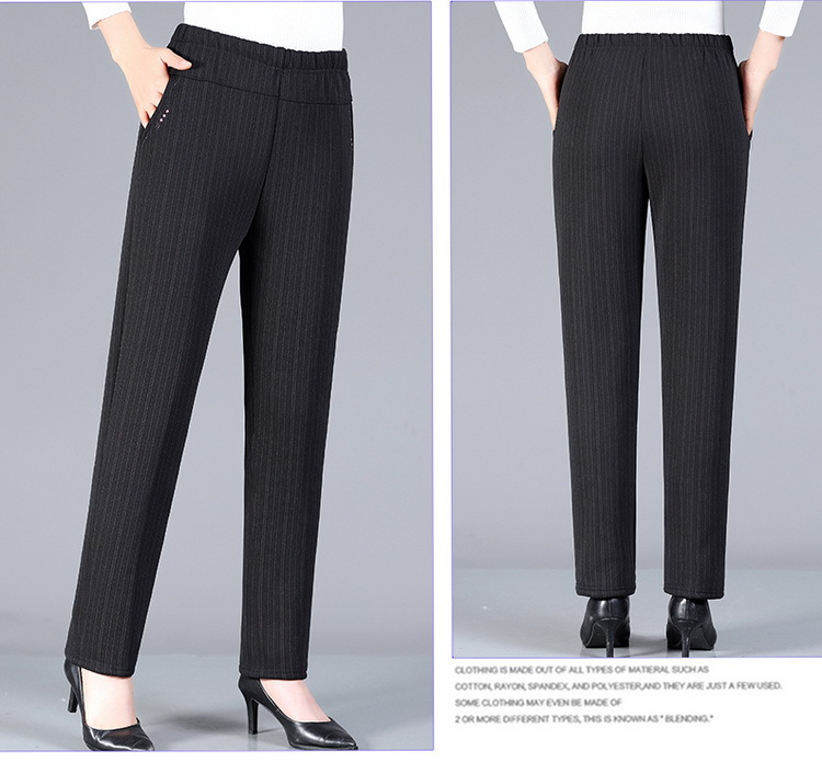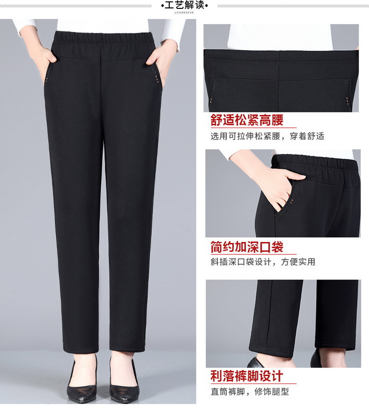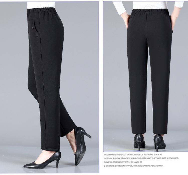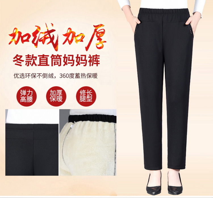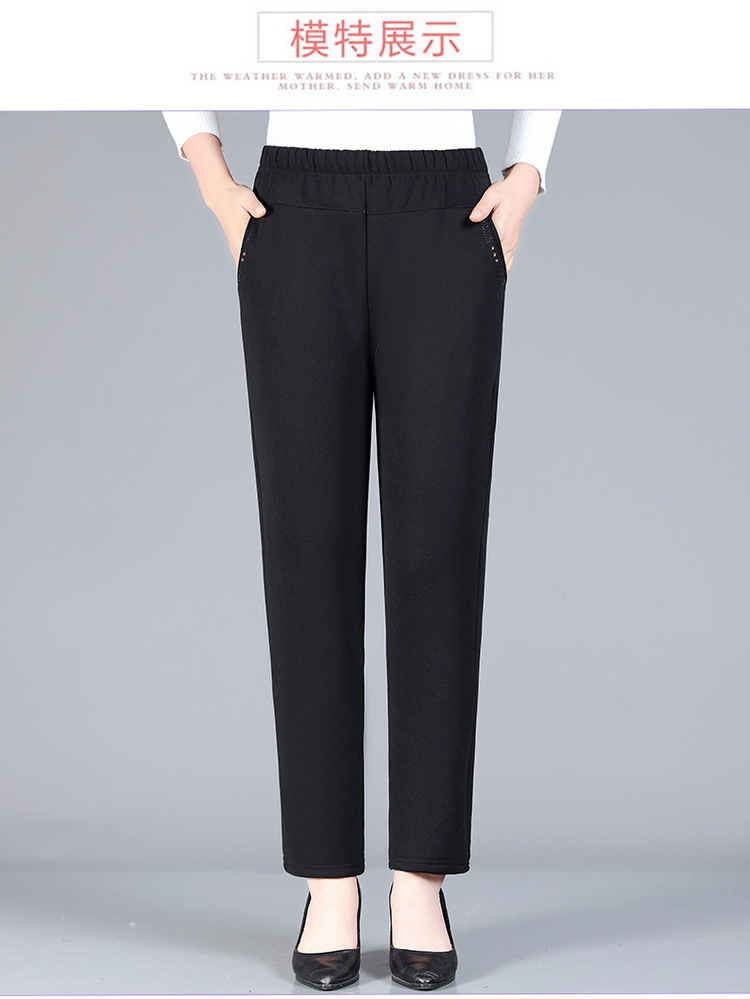 中高年の女性のズボンにベルベットの厚いテンションの高い腰の高齢者のズボンの女性のズボンのゆるいお母さんのストレートパンツ
