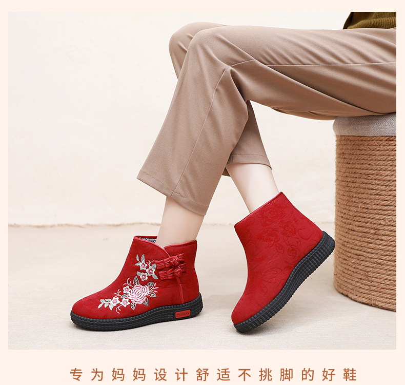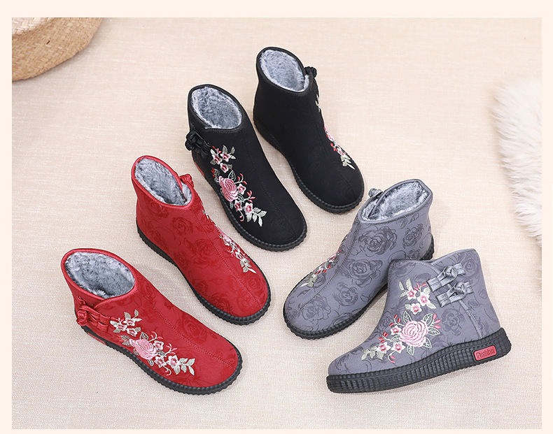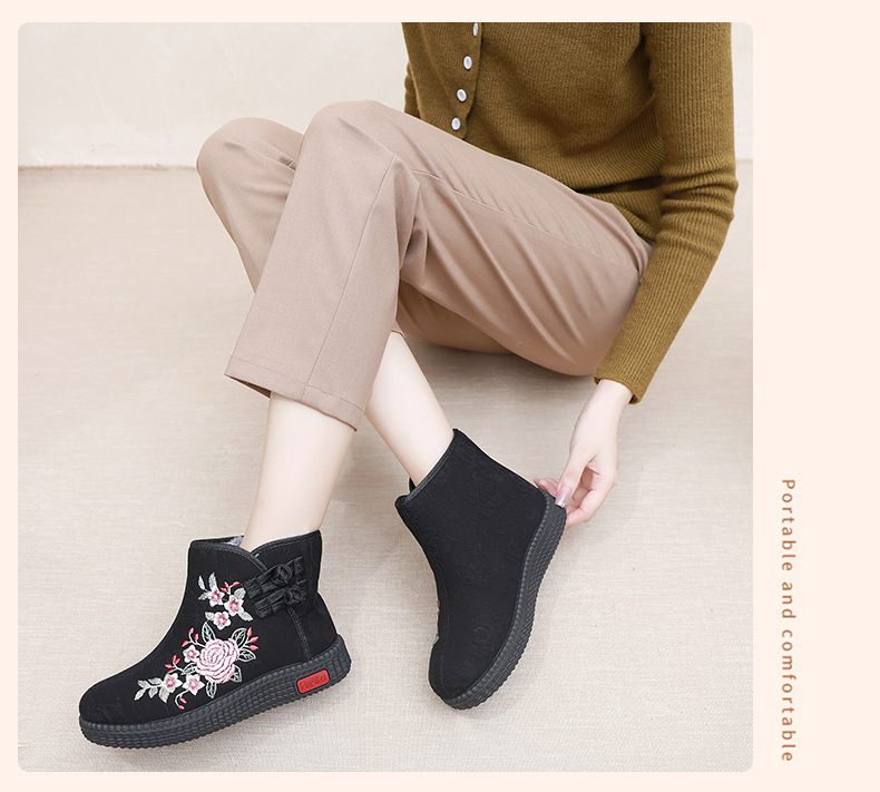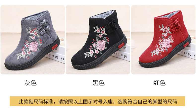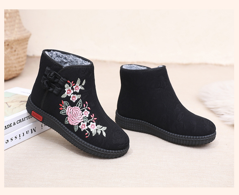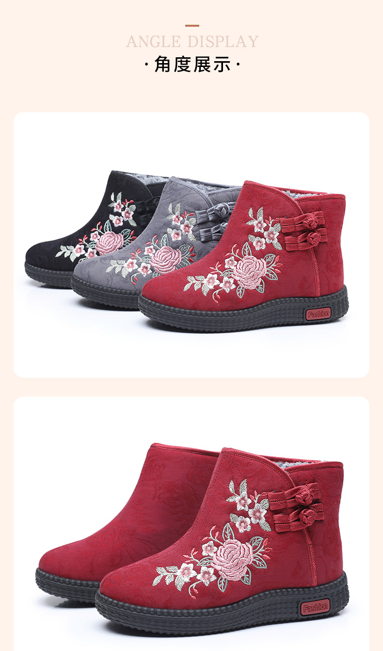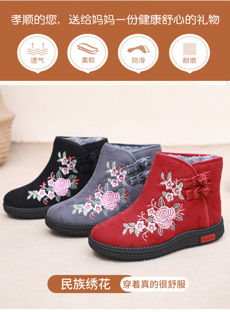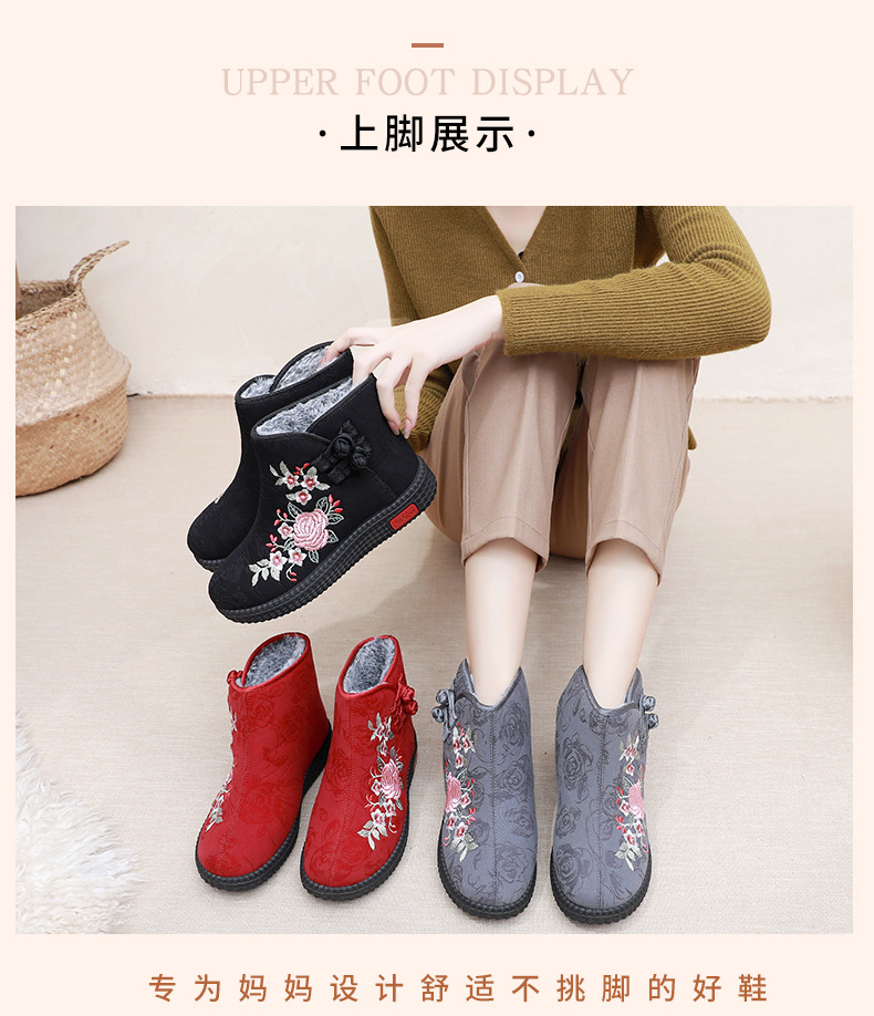 冬の古い北京の布の靴の女性の綿の靴の民族の風のショートブーツとベルベットの保温のお母さんの靴の中国風の刺繍の女性の綿の靴
