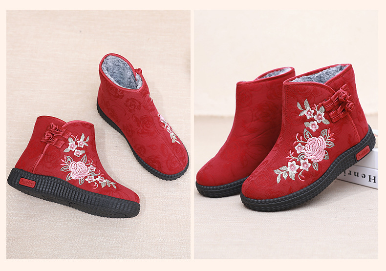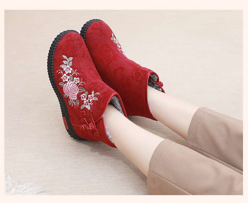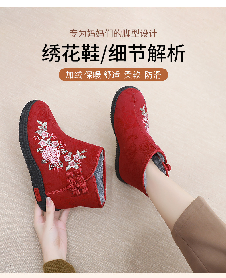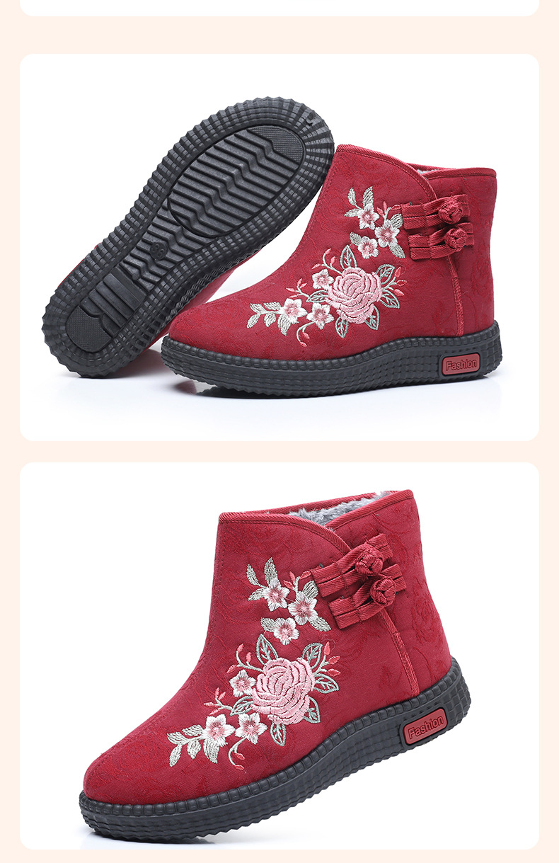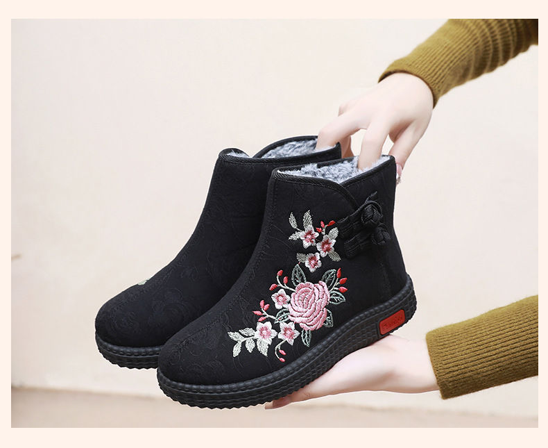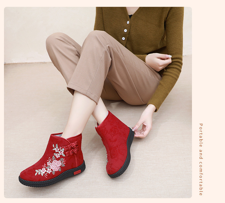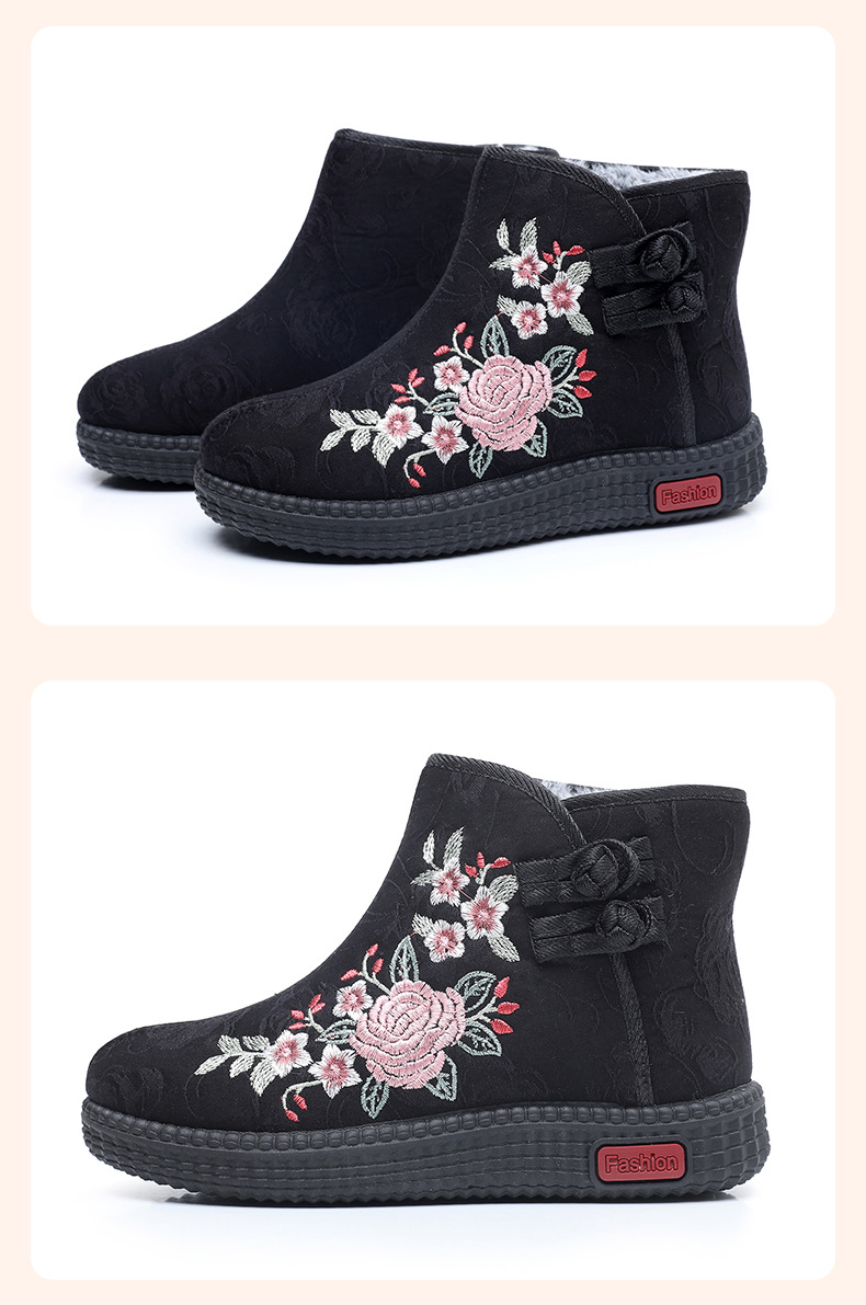 冬の古い北京の布の靴の女性の綿の靴の民族の風のショートブーツとベルベットの保温のお母さんの靴の中国風の刺繍の女性の綿の靴