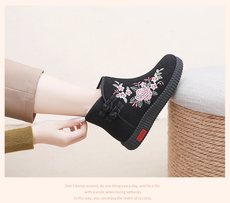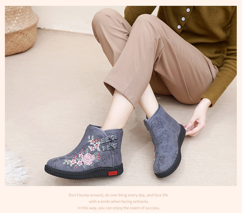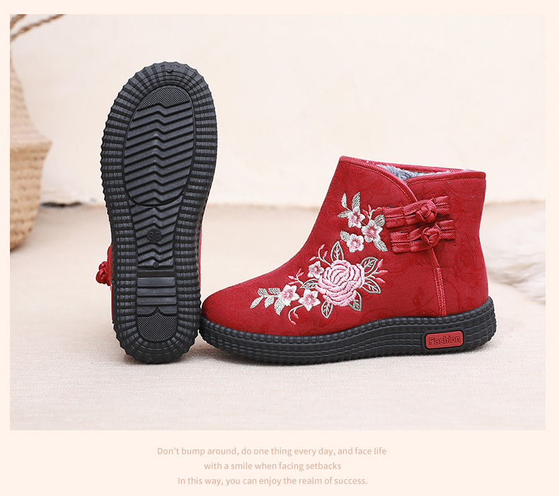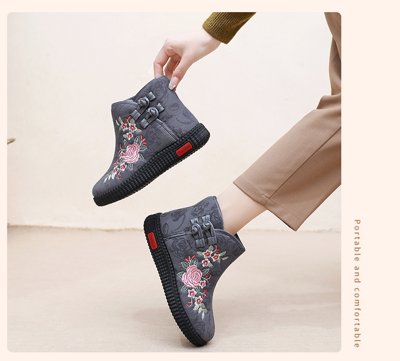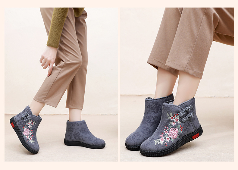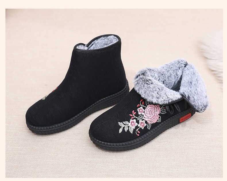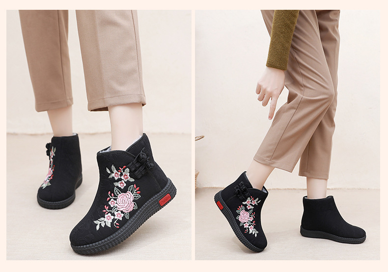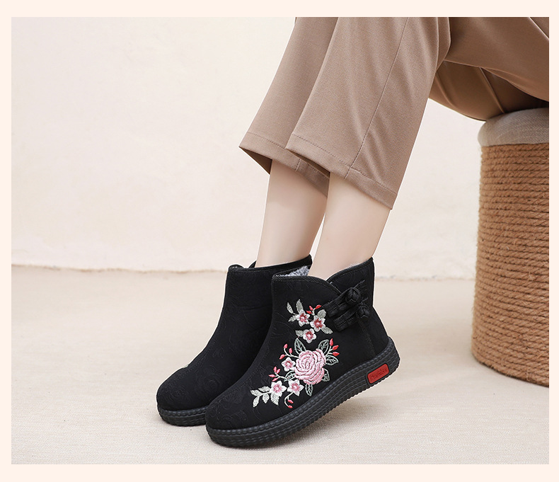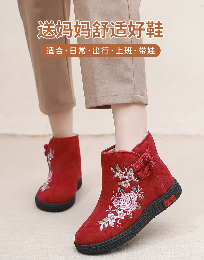 冬の古い北京の布の靴の女性の綿の靴の民族の風のショートブーツとベルベットの保温のお母さんの靴の中国風の刺繍の女性の綿の靴