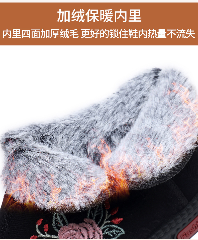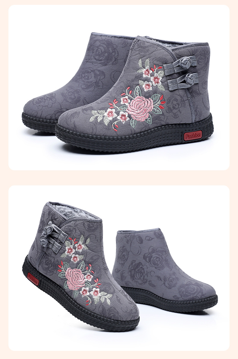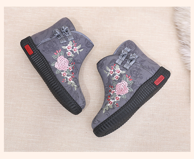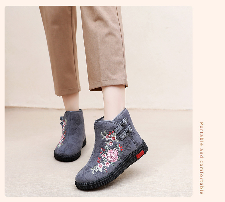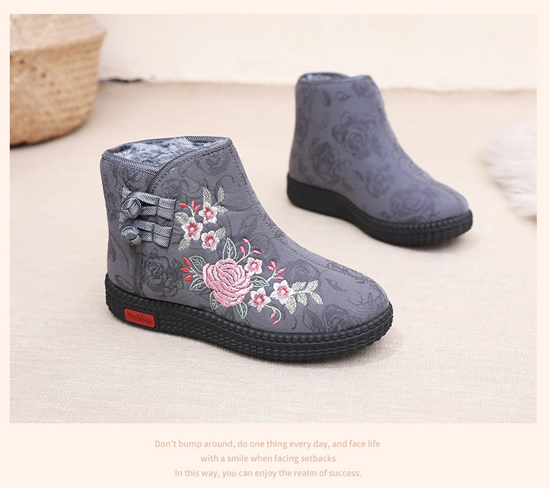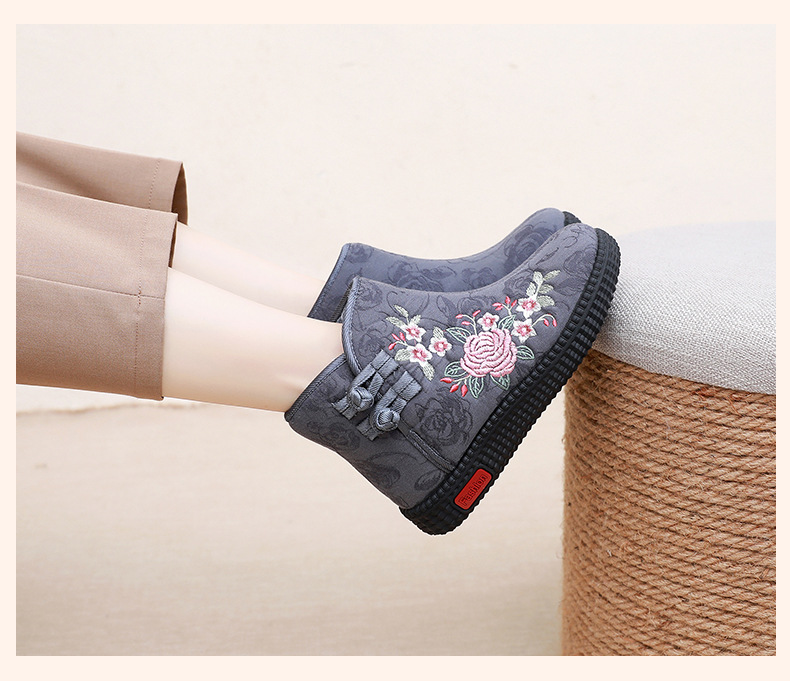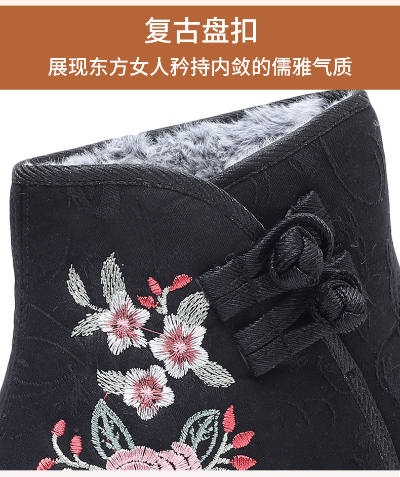冬の古い北京の布の靴の女性の綿の靴の民族の風のショートブーツとベルベットの保温のお母さんの靴の中国風の刺繍の女性の綿の靴
