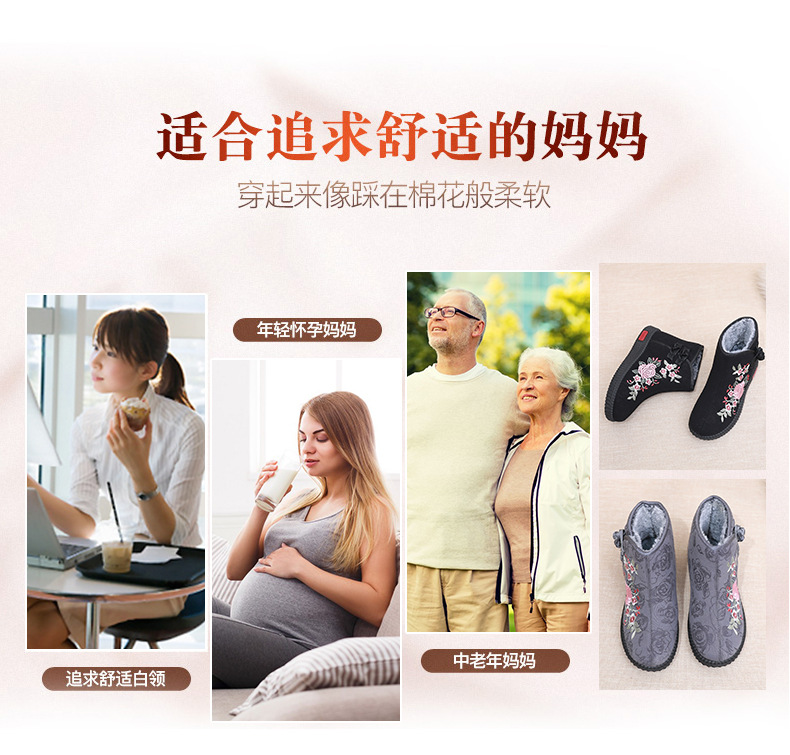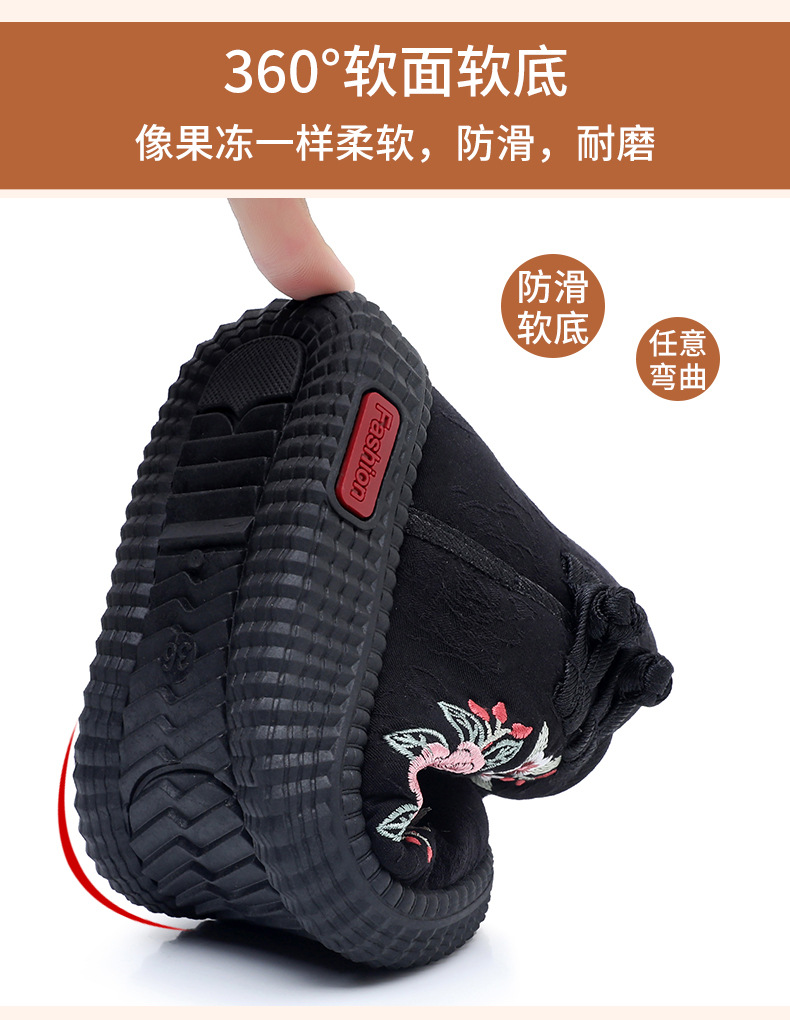 2024冬の中高年綿毛ベルベット保温綿靴滑り止め軟底秋冬雪地靴女母綿靴
