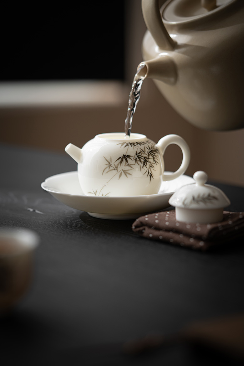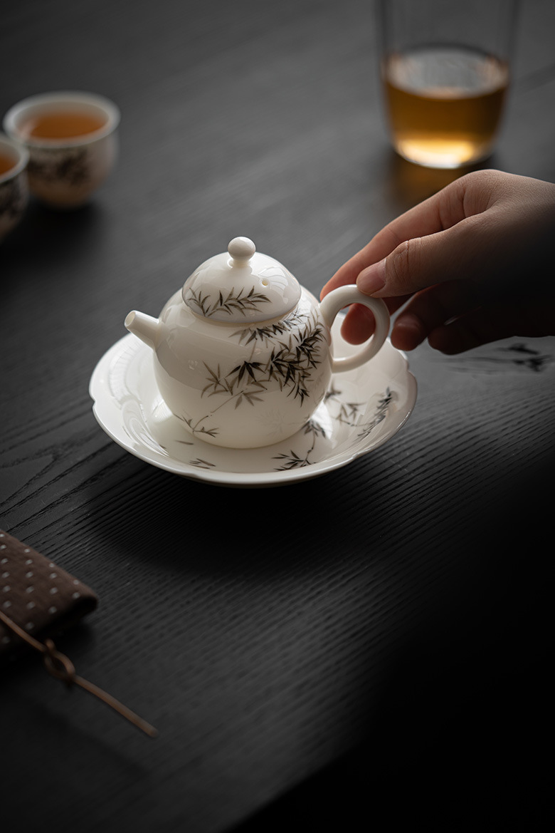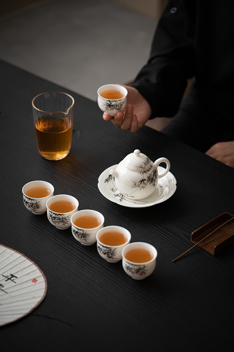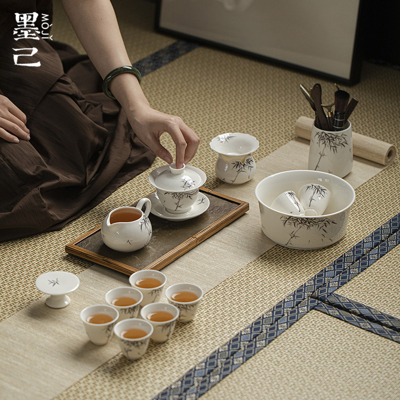 墨己暮蒼斎連名手描き墨竹セット家庭用茶器セット蓋碗ティーポット茶道部品六君子