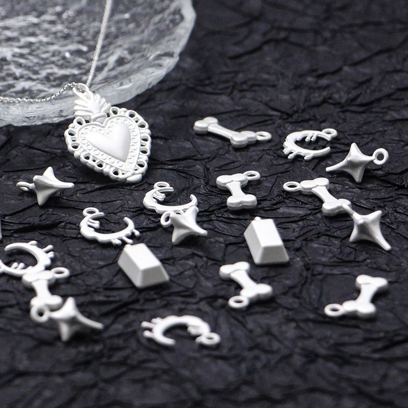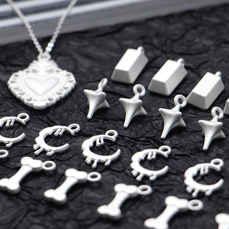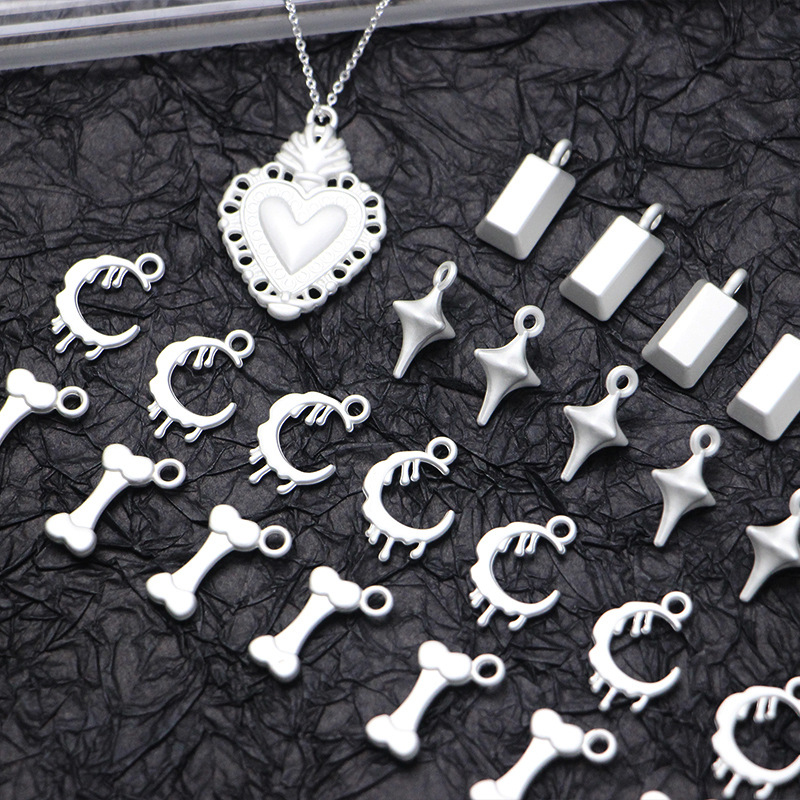 甘い少女風銀白色合金ペンダント骨月銀煉瓦愛diyネックレス鎖キーホルダー