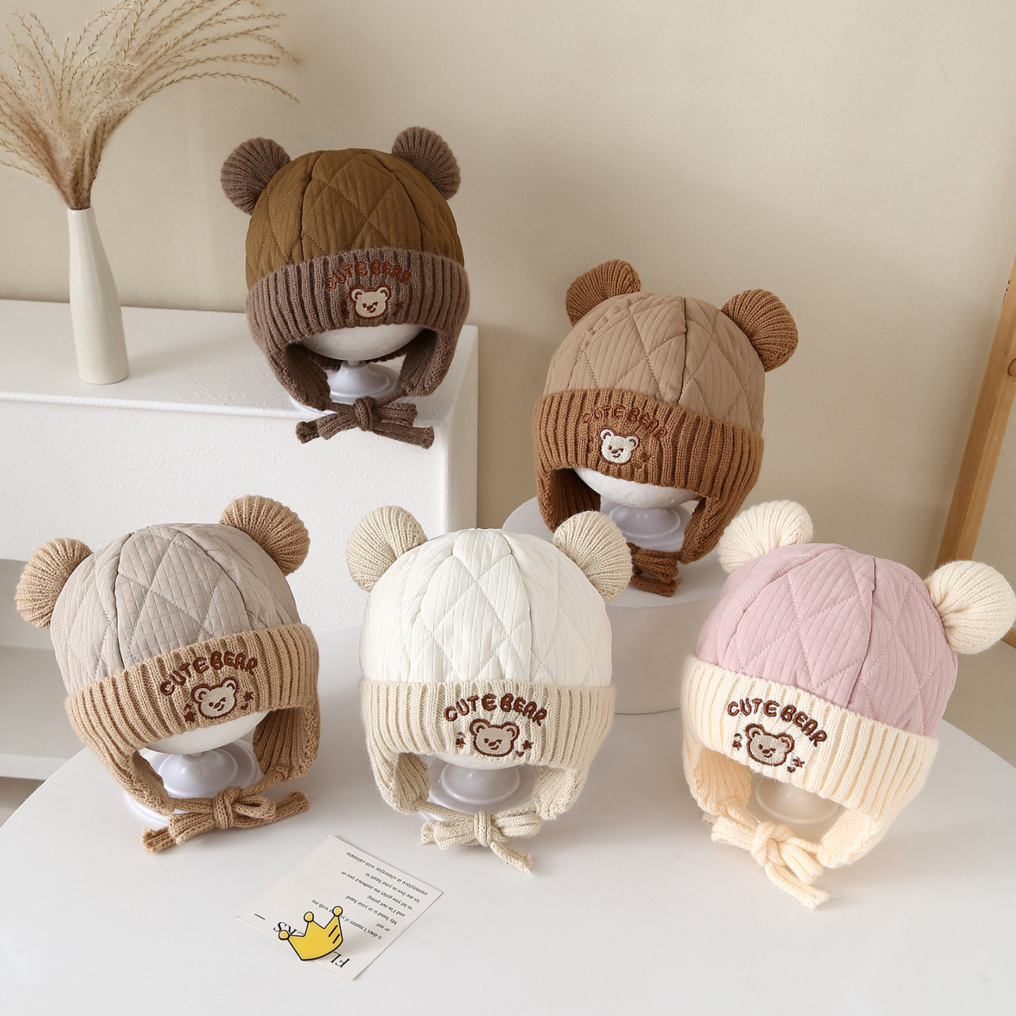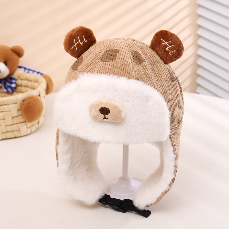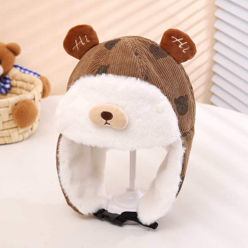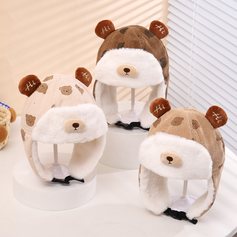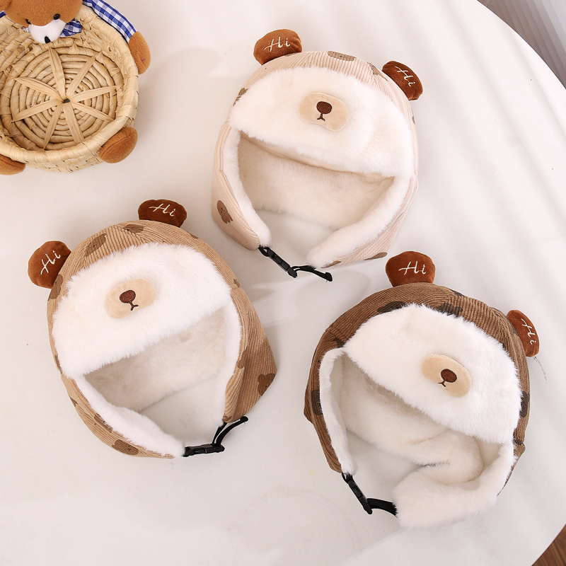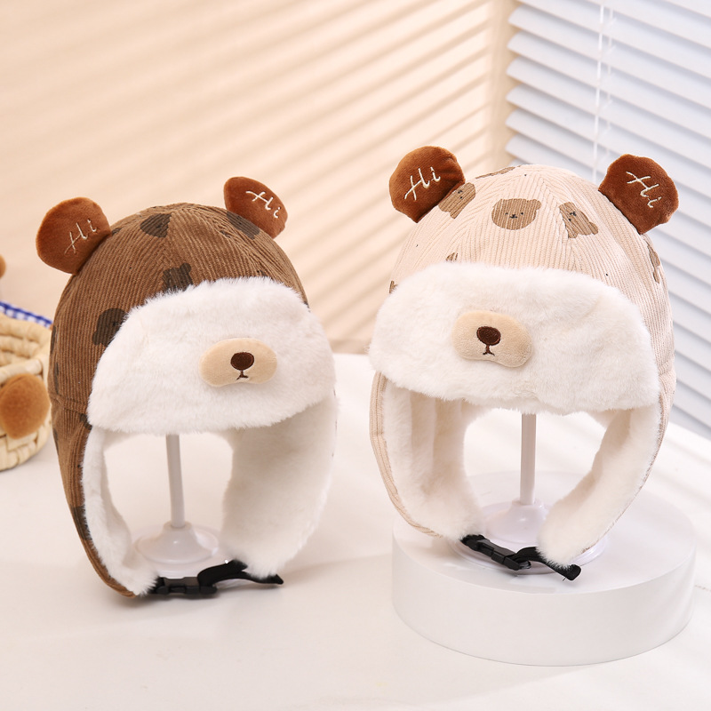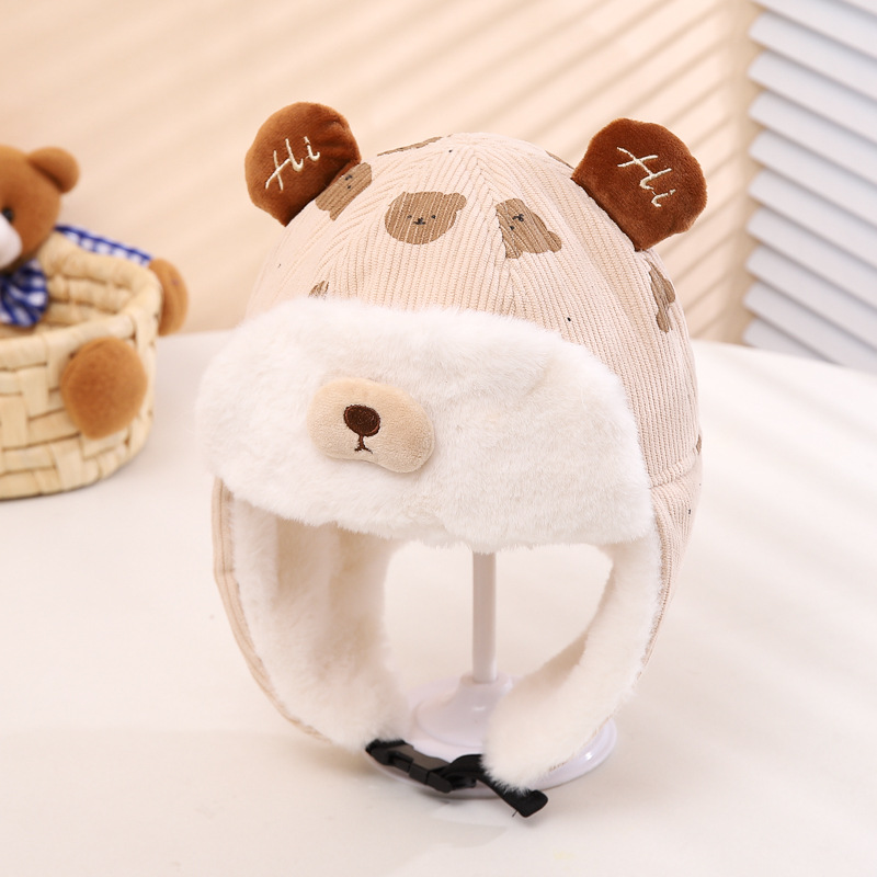 ベアー赤ちゃん冬保温耳保護帽子シンプルな男女児童マフラー帽子一体帽子ベルベット帽子赤ちゃん帽子