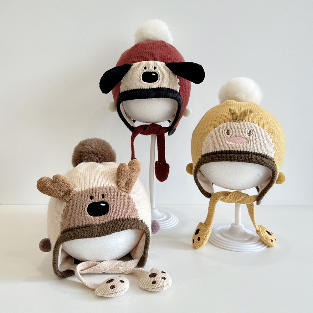 小动物护耳婴儿帽子可爱超萌针织护耳帽男女宝宝保暖厚套头毛线帽