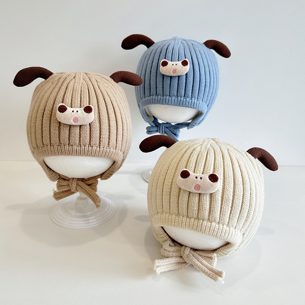 小狗护耳婴儿帽子秋冬季针织帽可爱卡通帽小月龄宝宝冬天毛线帽潮